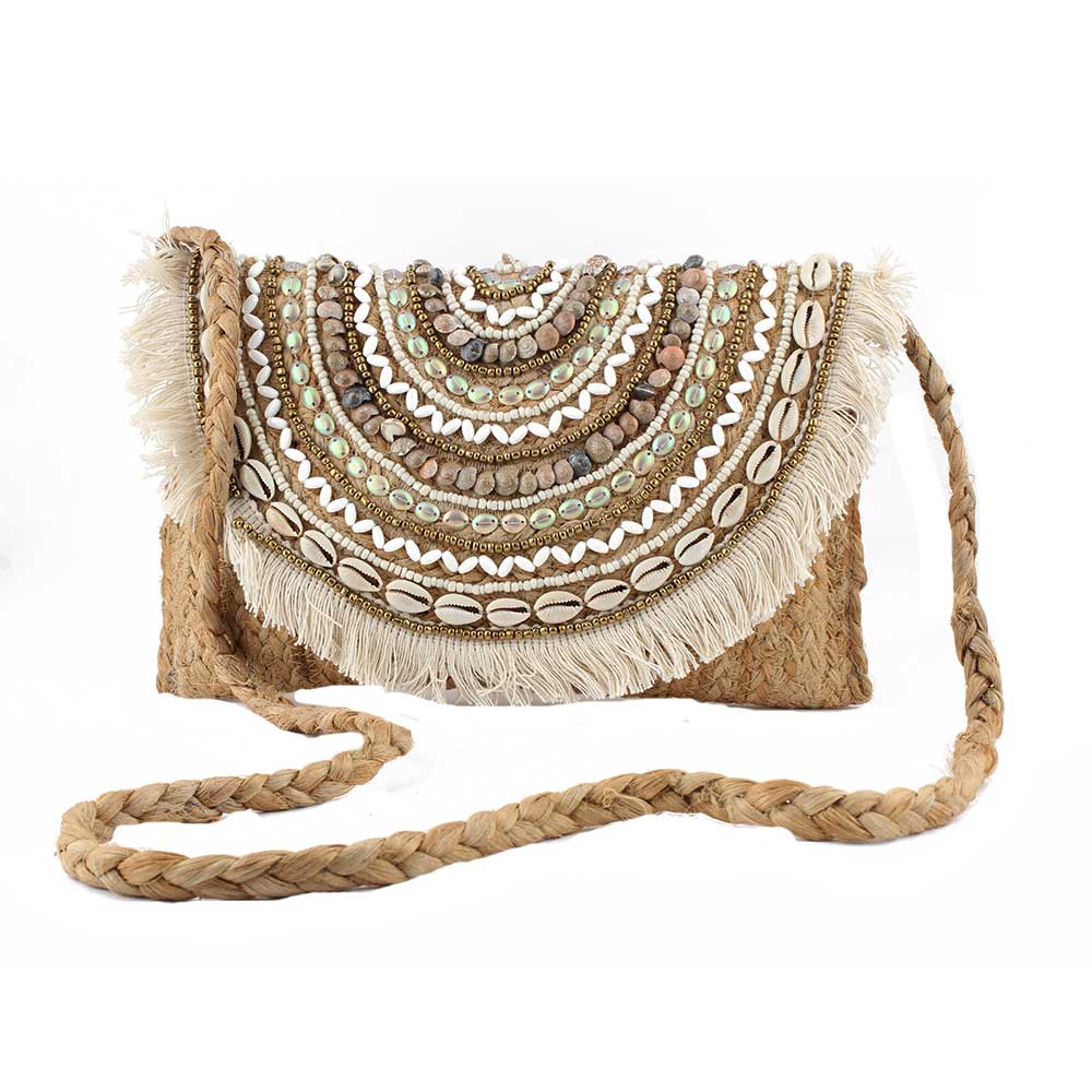 This Indian boho bag features elaborate beadwork and coin work, making it ideal for festivals. This boho bag is made of eco-friendly jute cloth and would be a perfect companion for music festivals, rock concerts, or any excursion around the world with its elegant and understated simplicity.