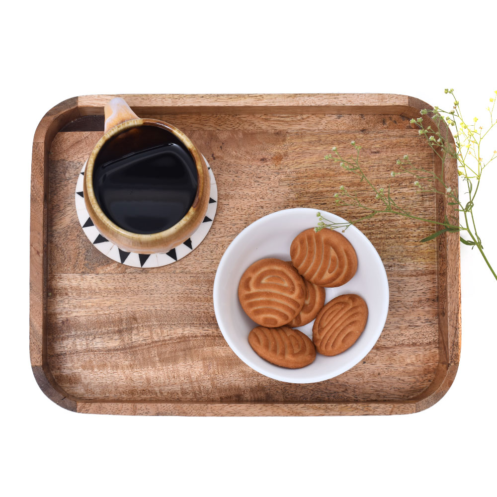 This modern pallet or tray is made of high-quality wood that is resilient and difficult to damage. This Multipurpose tray is stylish and contemporary can be utilised in the kitchen, bedroom, living room, and other locations. This wooden tray is secure, can effectively replace plastic plates, and is better for the environment. There are numerous uses for it. It can be used as a storage tray for household items or for cosmetics and jewellery. The wood grain is distinct, fashionable, and lovely because it was made with such fine craftsmanship.