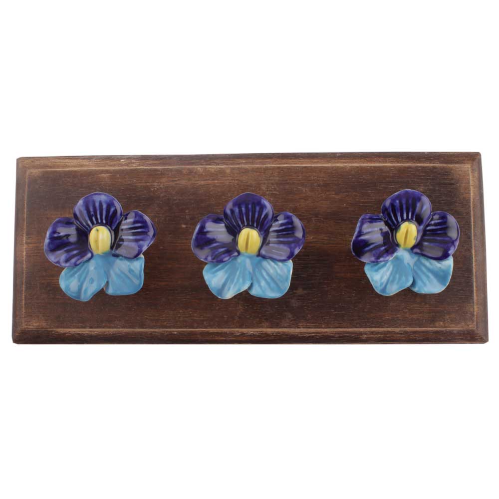 Navy Blue And Turquoise Ceramic Flower Wooden Hooks. A Perfect Complement to the Soft Tone of the Wood are these White Traditional Hat and Coat Hook Made of Genuine Porcelain and Brass. It can be used to Hang Jewelry, Leashes, Towels, Scarves, Light Weight Sweaters, Caps etc.