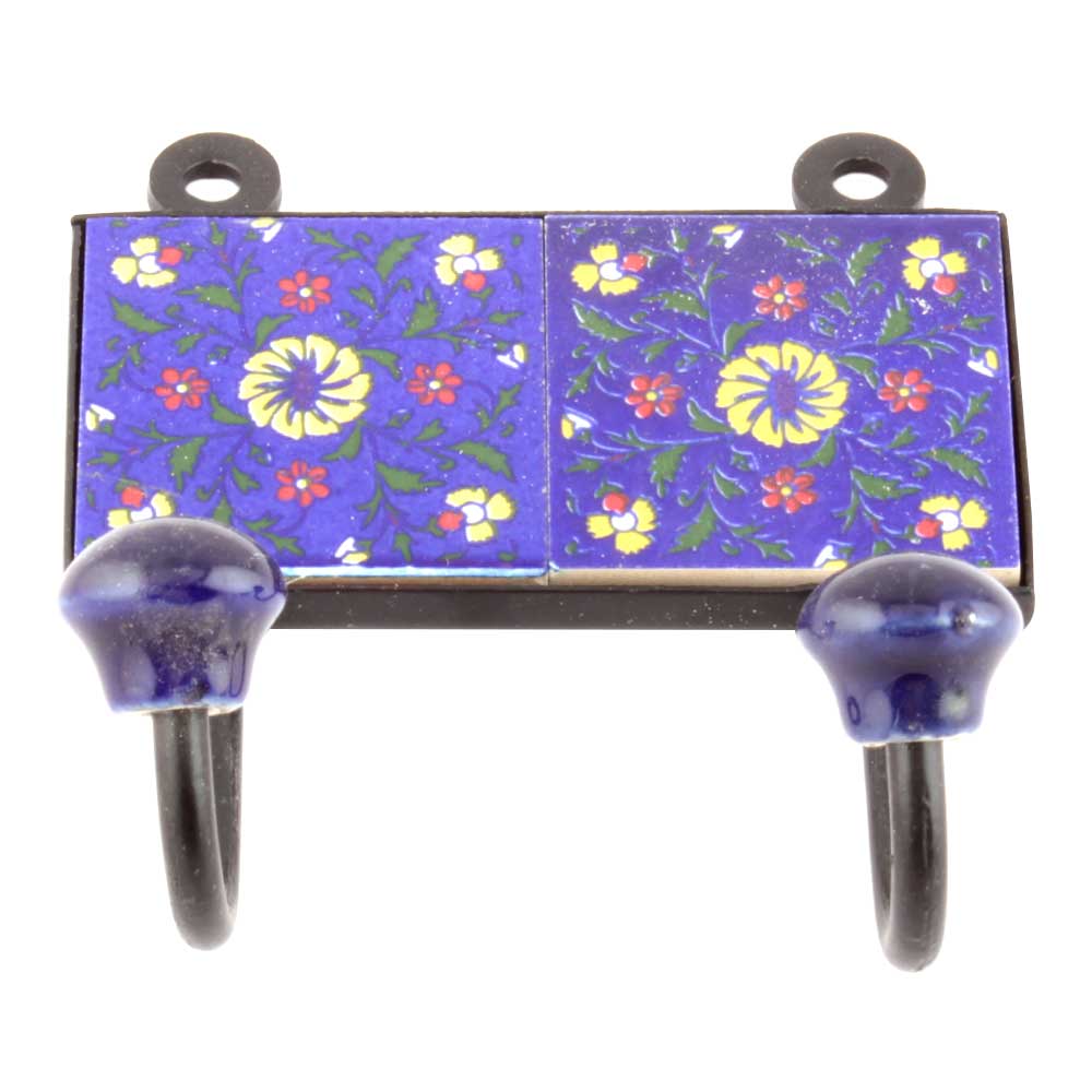 Navy Blue And Yellow Wheel Flower Tiles Hooks Online. When Put on Wall or Cabinet it is an Art in itself. The Metal Part of this Hook is Black Powder Coated.