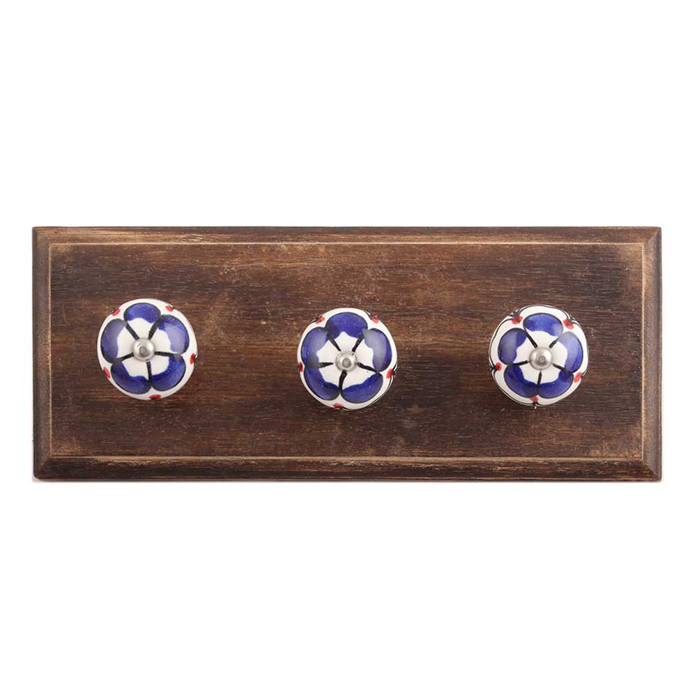 Navy Blue Ceramic Wooden Hook. A Perfect Complement to the Soft Tone of the Wood are these White Traditional Hat & Coat Hook Made of Genuine Porcelain and Brass. It can be use to Hang Jewellery, Leashes, Towels, Scarves, Light Weight Sweaters, Caps Etc.