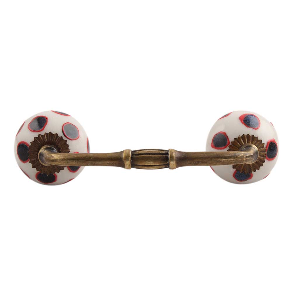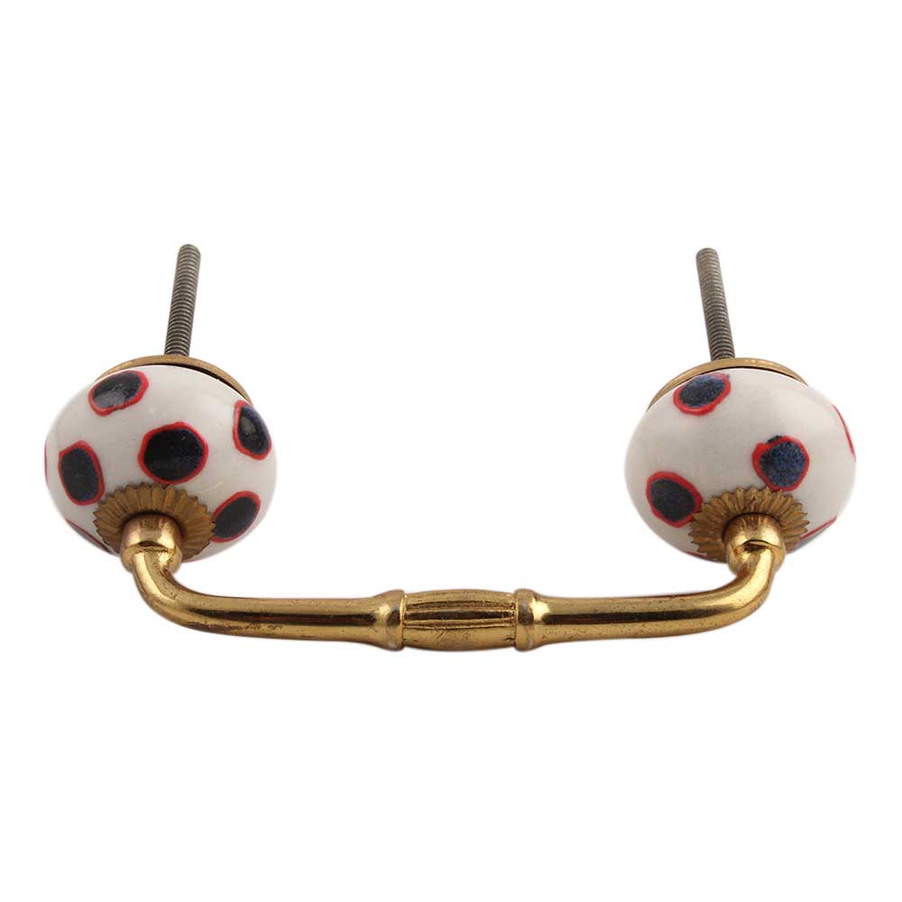 Navy Blue Dot Ceramic Bridge Handle. Ideal for Drawer, Dresser, Cabinet, Wardrobe, Cupboard and Almirah.