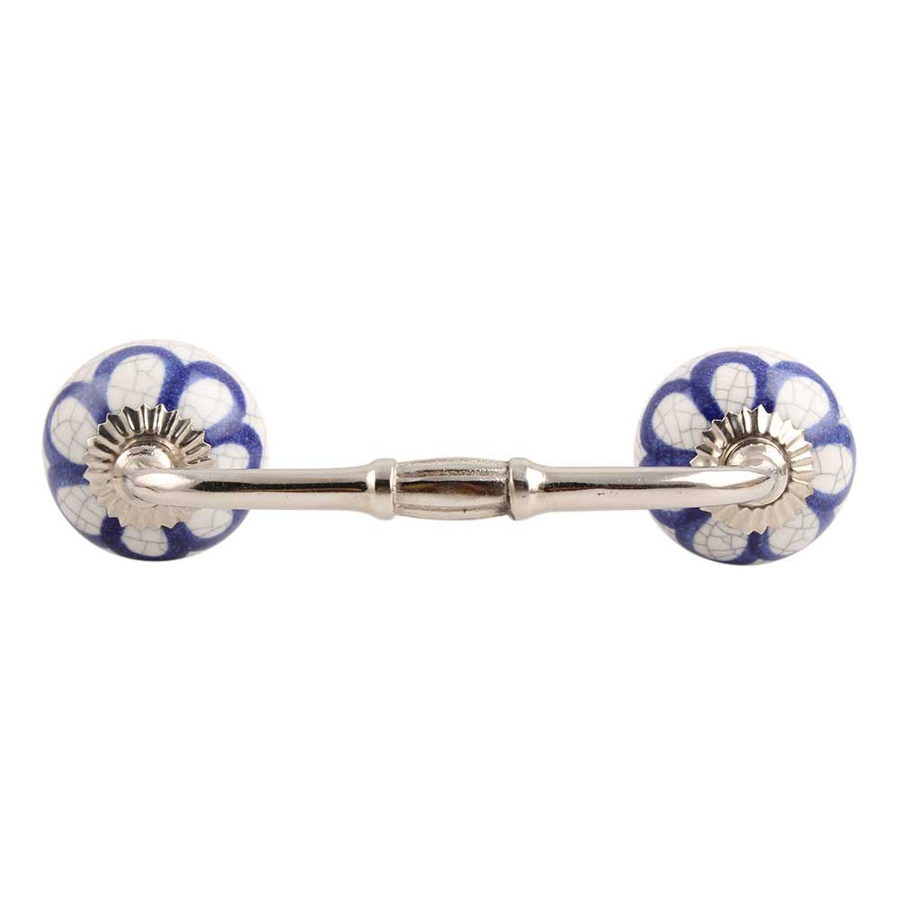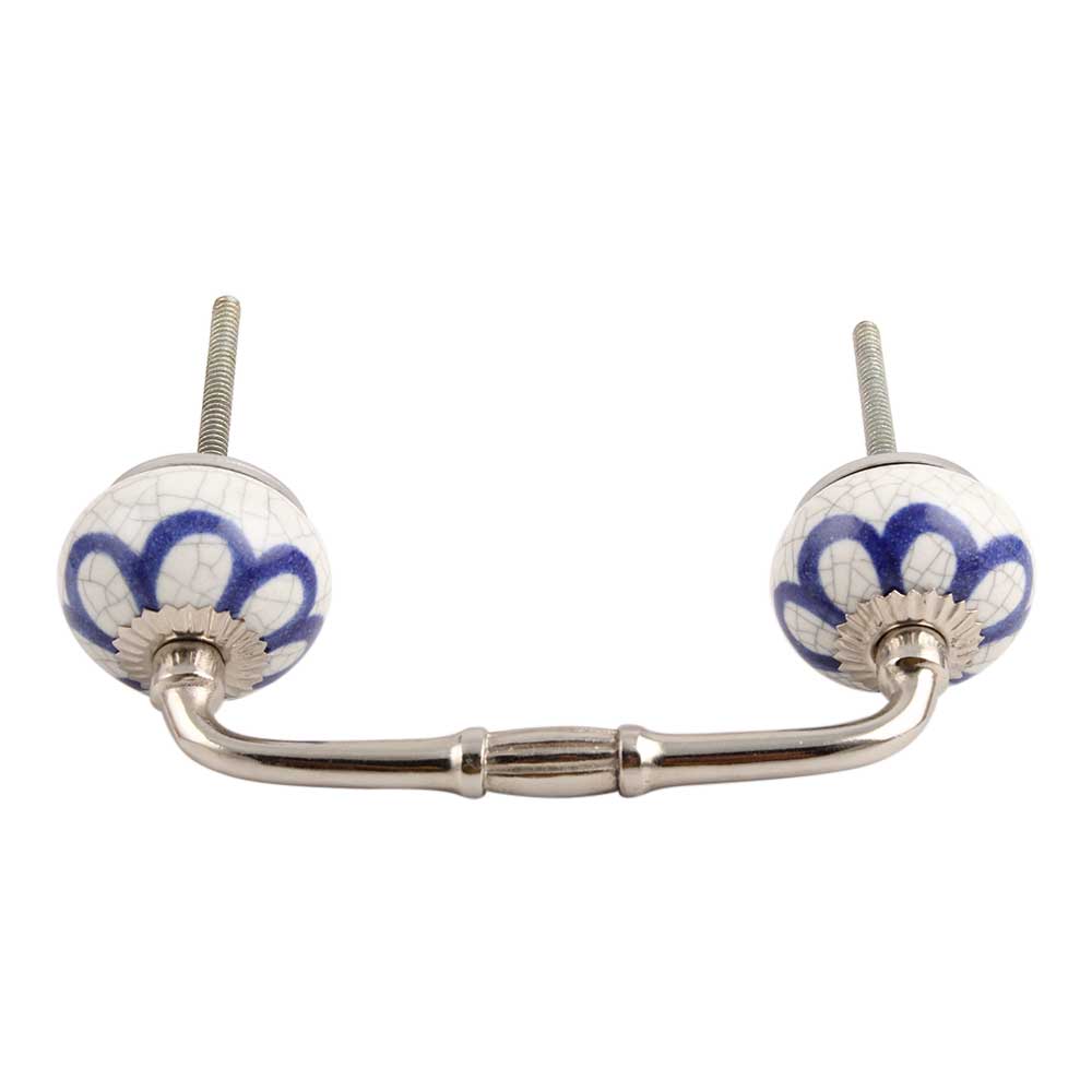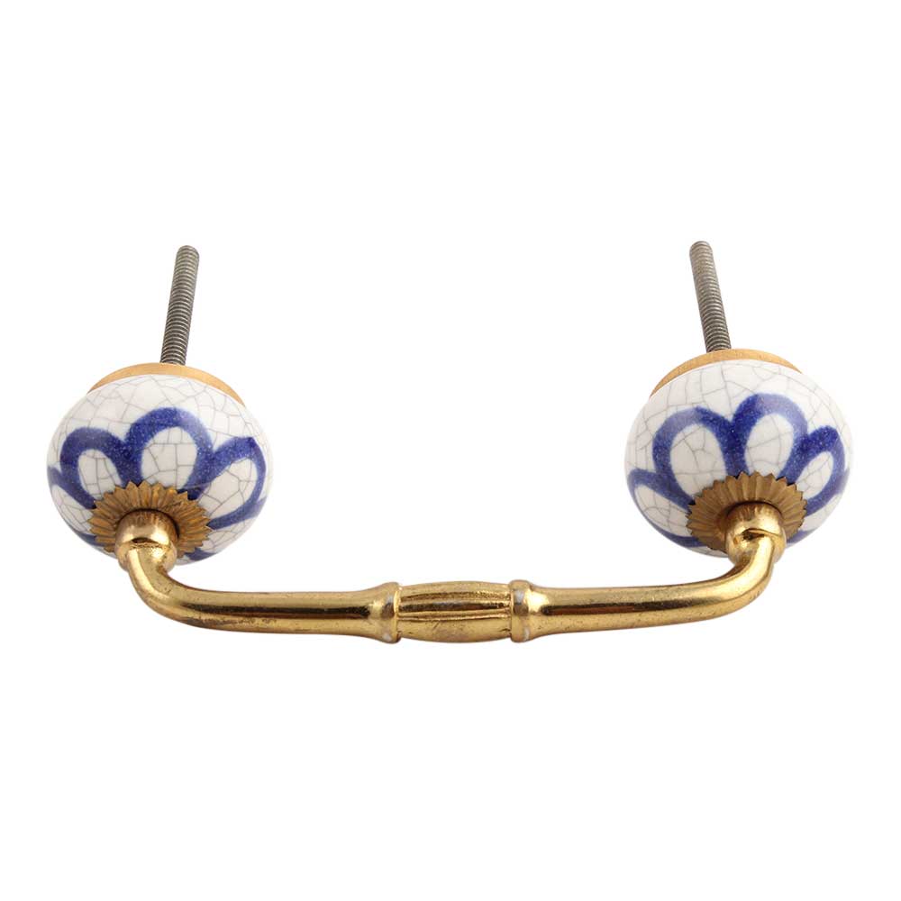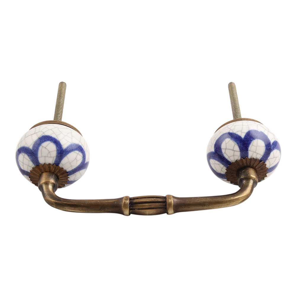 Navy Blue Flora Crackle Ceramic Bridge Handle. Ideal for Drawer, Dresser, Cabinet, Wardrobe, Cupboard and Almirah.