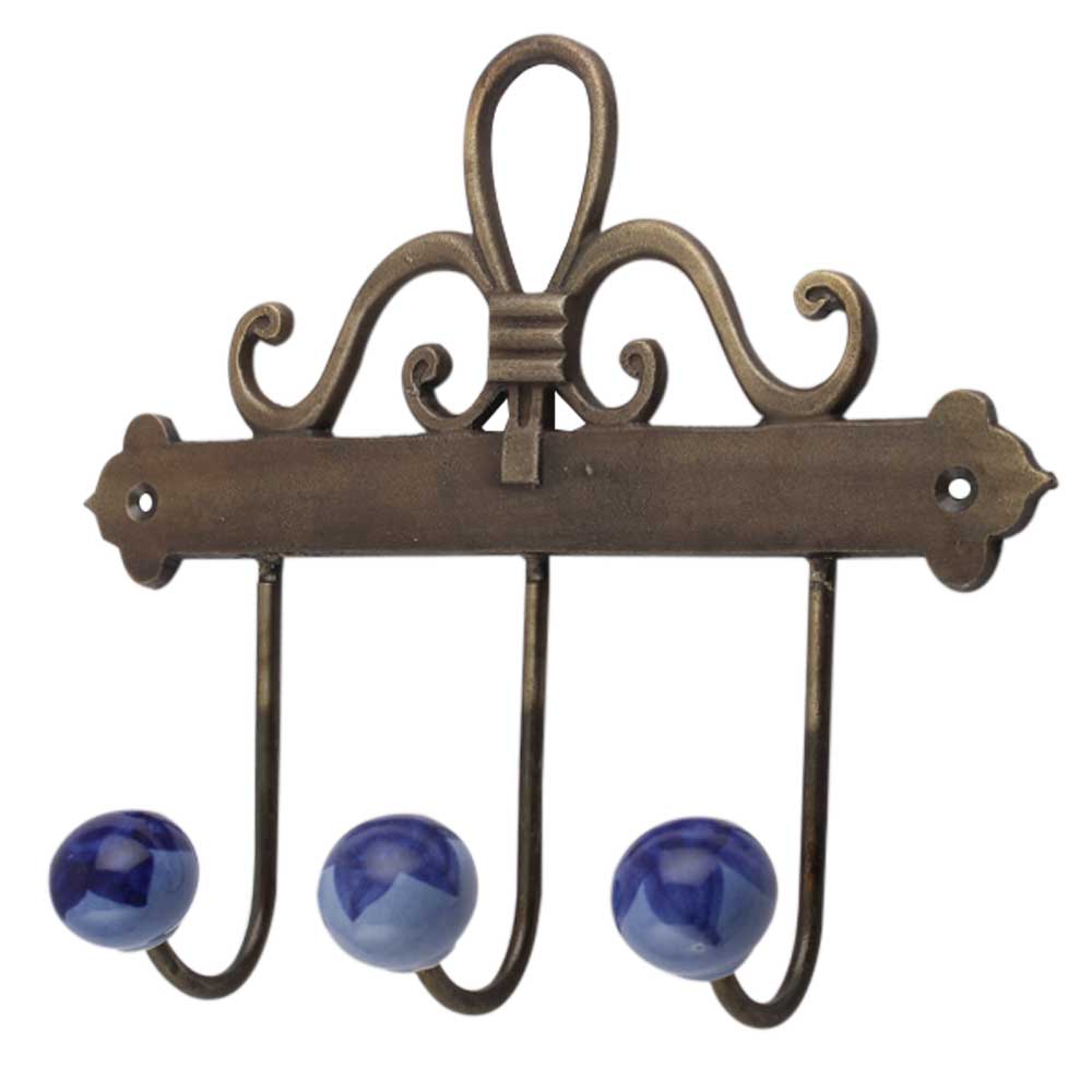 Navy Blue Floral Ceramic Iron Hook. A Perfect Complement to the Soft Tone of the Wood are these White Traditional Hat & Coat Hook Made of Genuine Porcelain and Brass. It can be use to Hang Jewellery, Leashes, Towels, Scarves, Light Weight Sweaters, Caps Etc.