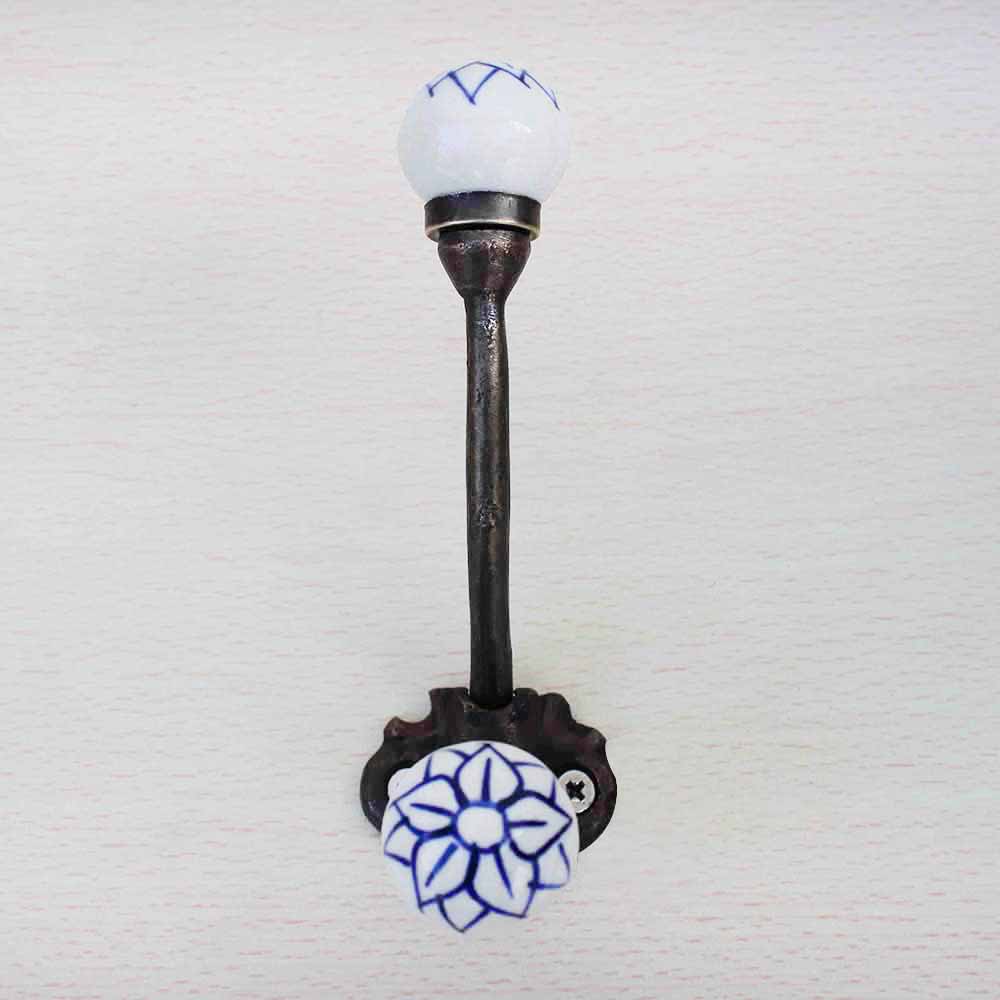 Navy Blue Floral Iron Hook-EHG-17.when put on wall or cabinet it gives a sturdy look. This hook is strong enough to hold your cloths, keys, tea cups, coffee mugs, hand towels etc.