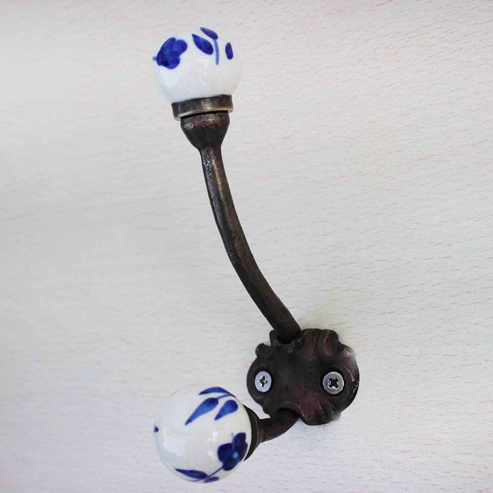 Navy Blue Floral Iron Hook-EHG-27.when put on wall or cabinet it gives a sturdy look. This hook is strong enough to hold your cloths, keys, tea cups, coffee mugs, hand towels etc.