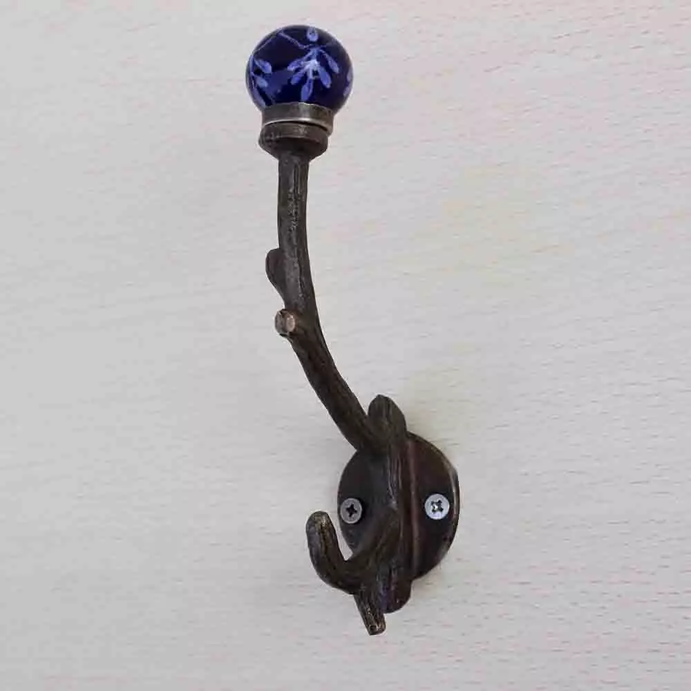 Navy Blue Floral Tree Hook-EHG-08.when put on wall or cabinet it gives a sturdy look. This hook is strong enough to hold your cloths, keys, tea cups, coffee mugs, hand towels etc.