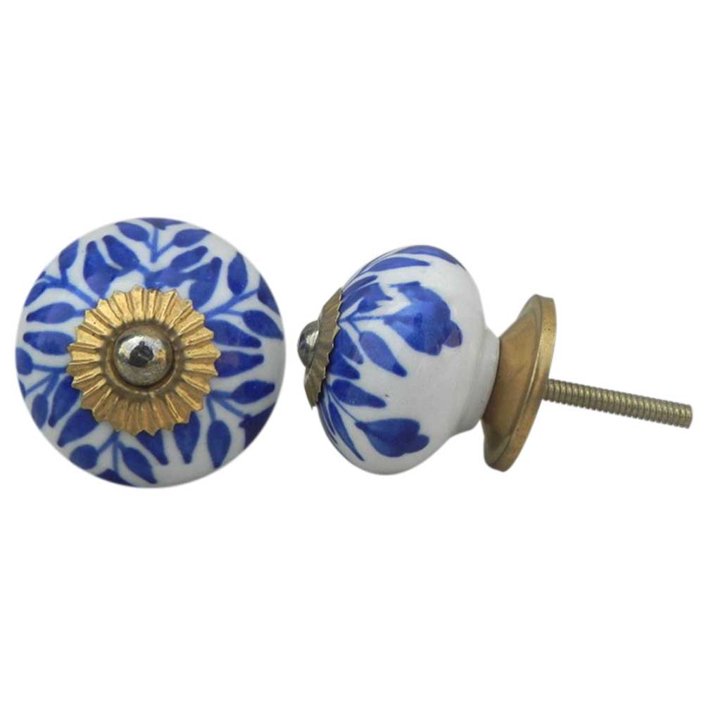 Navy Blue Leaf Ceramic Knob. Ideal for kitchen cabinets, kitchen drawers, dining room, bed room, chest drawers, dressing tables, almirah