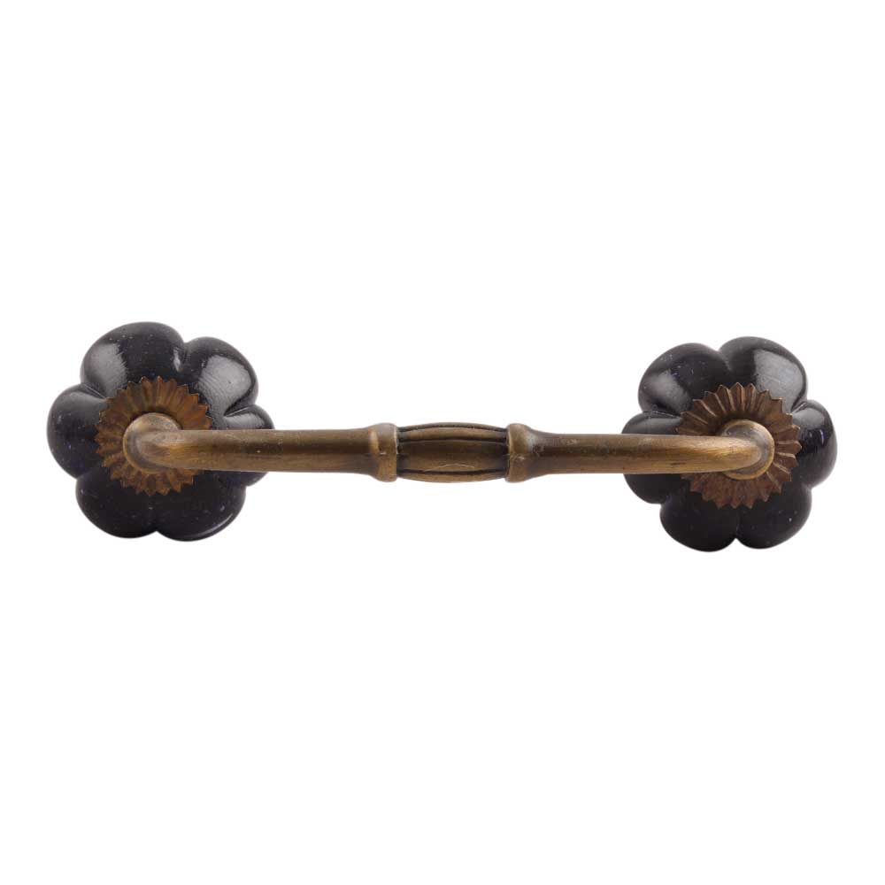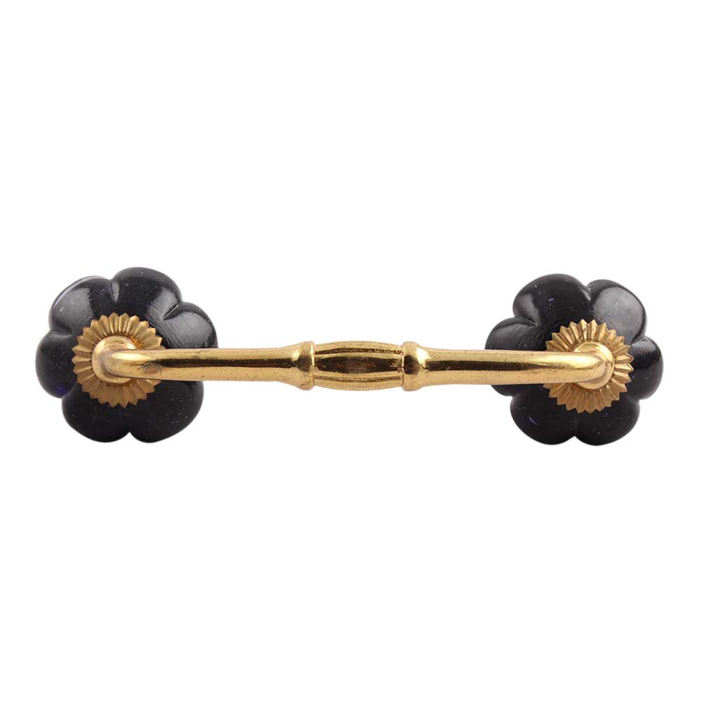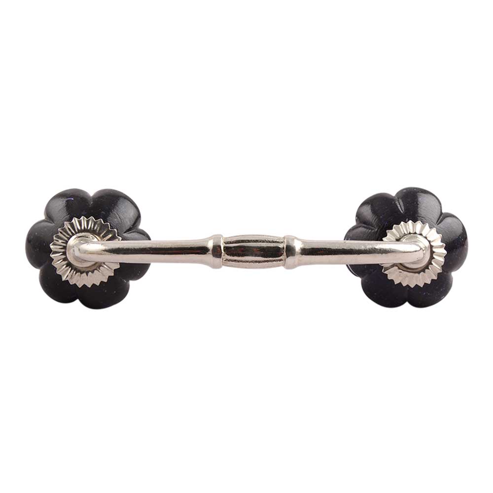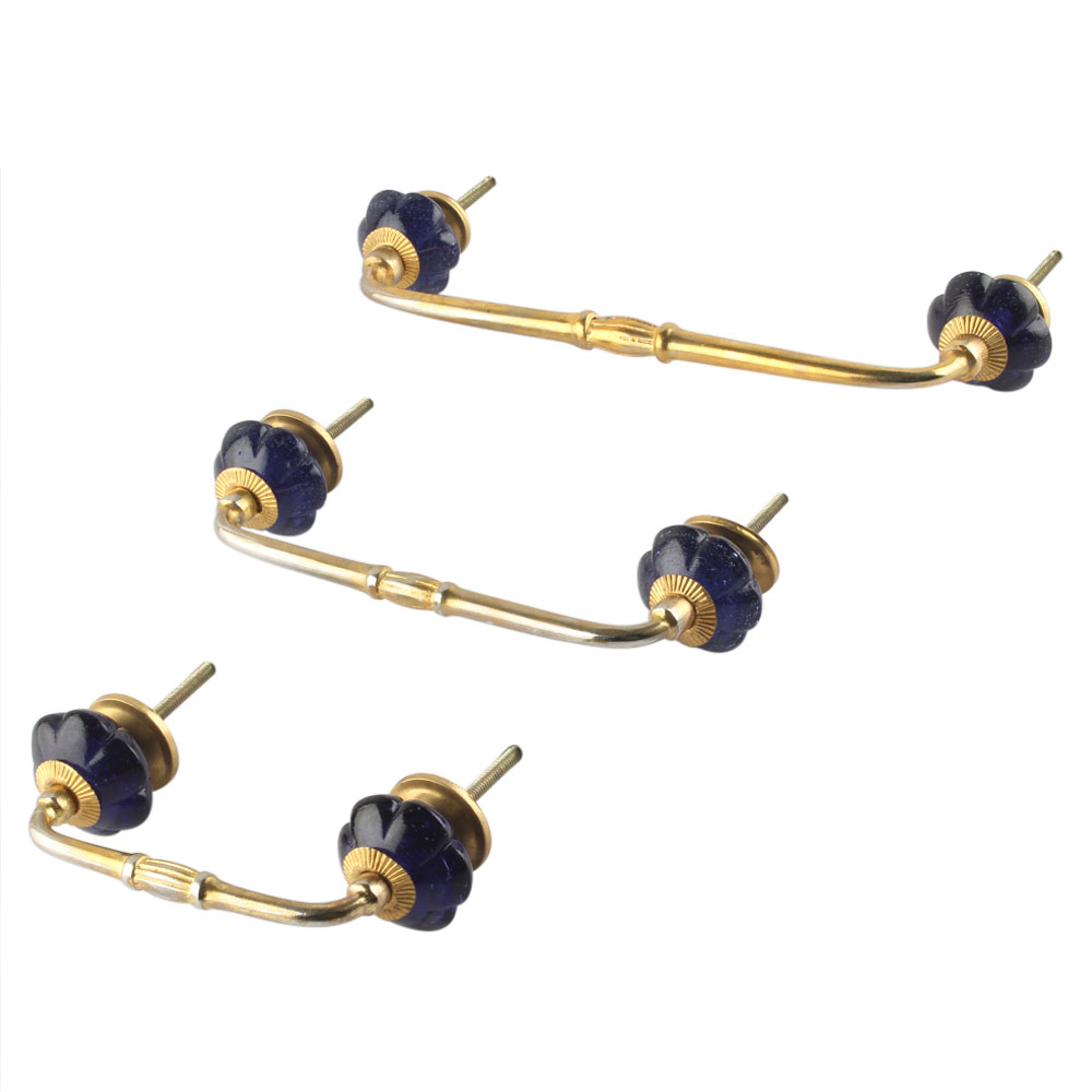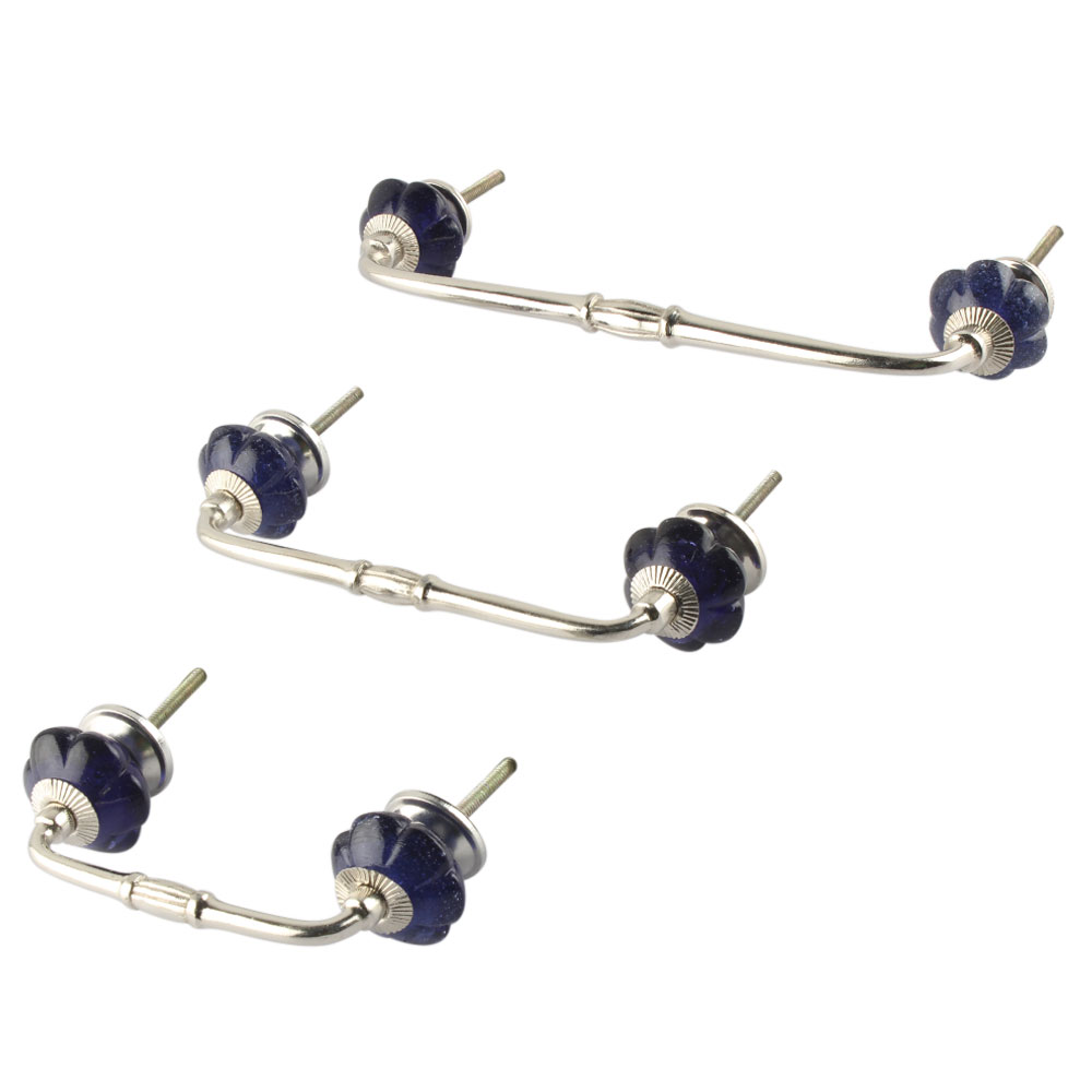 Navy Blue Melon Glass Bridge Handle. Ideal for Drawer, Dresser, Cabinet, Wardrobe, Cupboard and Almirah.
