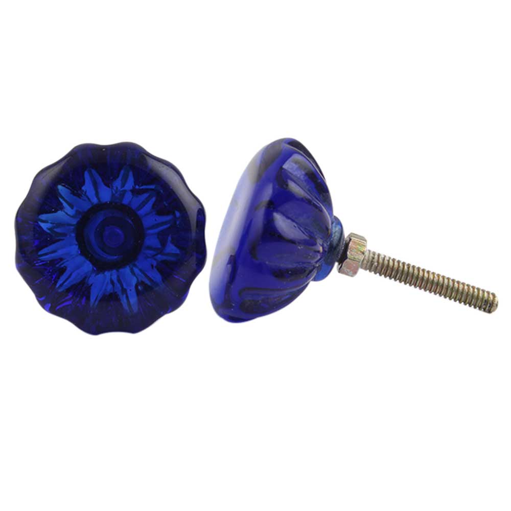 Navy Blue Paneled Sides Glass Knobs. Ideal for Drawer, Dresser, Cabinet, Wardrobe, Cupboard and Almirah.
