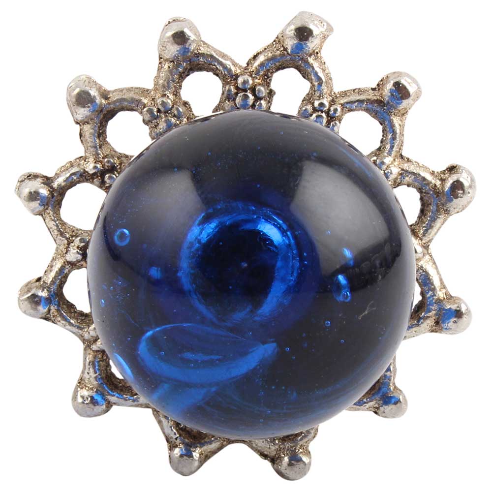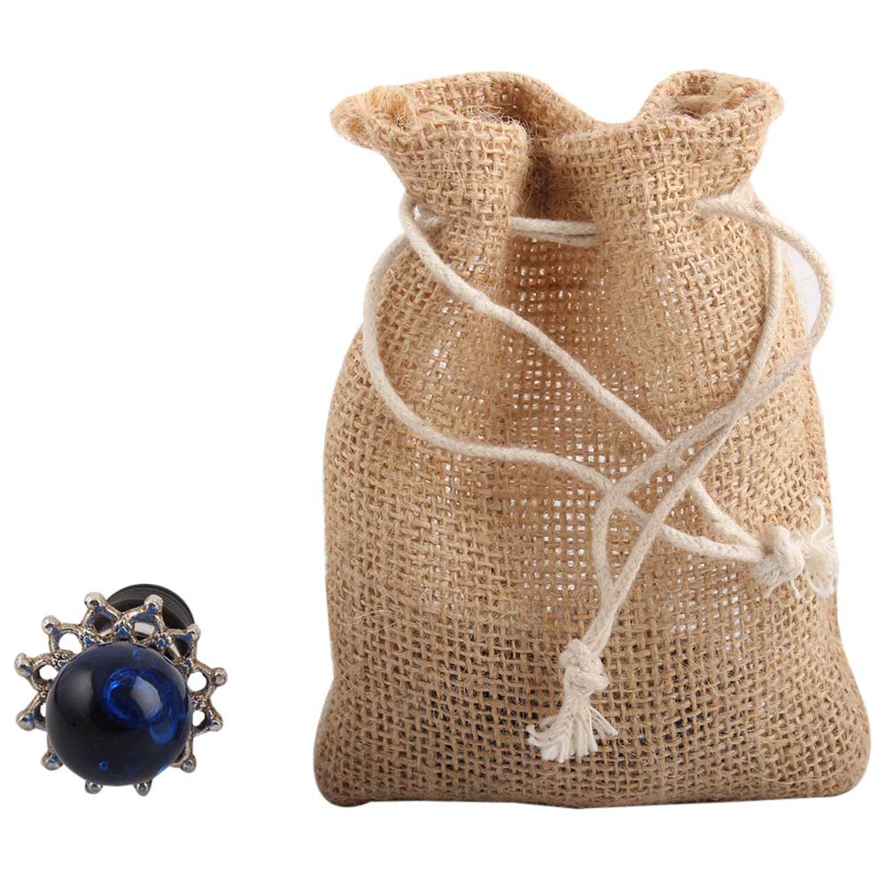 Navy Blue Round Glass And Metal Wine Stopper.zinc alloy wine bottle stopper with attractive Jute Bag Packaging.
