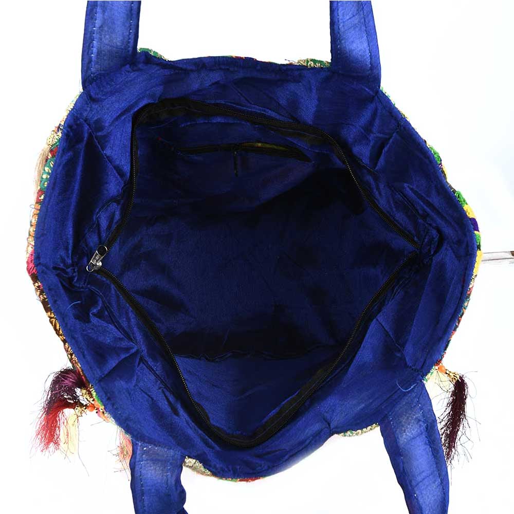 Vintage tribal kutchi banjara bag boho Indian gypsy hand embroidered mirror work multi color bag with tassels vintage coins beads .