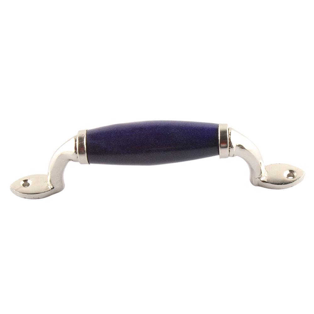Navy Blue Small Ceramic Silver Door Handles. Ideal for Drawer, Dresser, Cabinet, Wardrobe, Cupboard and Almirah.
