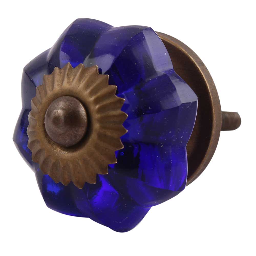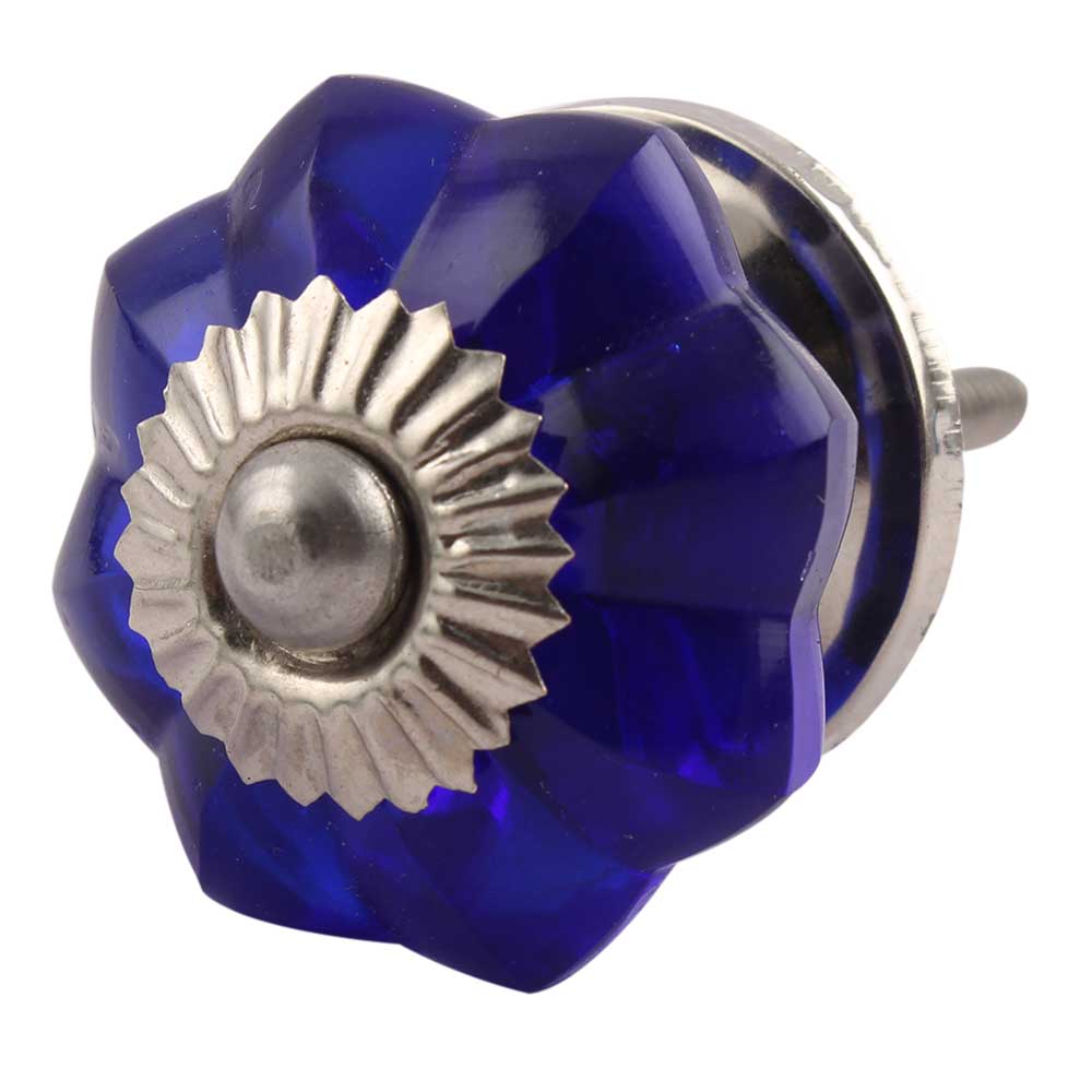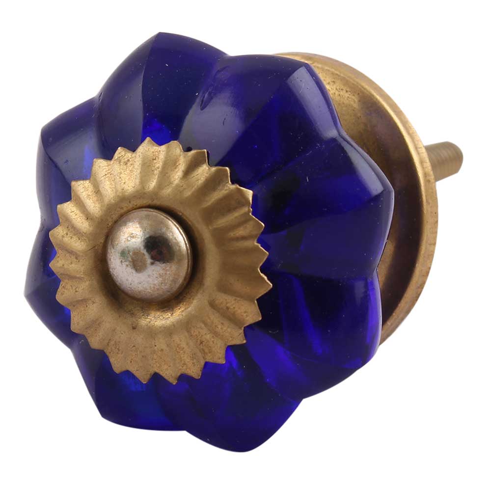 Navy Blue Small Melon Glass Knobs. Ideal for Drawer, Dresser, Cabinet, Wardrobe, Cupboard and Almirah.