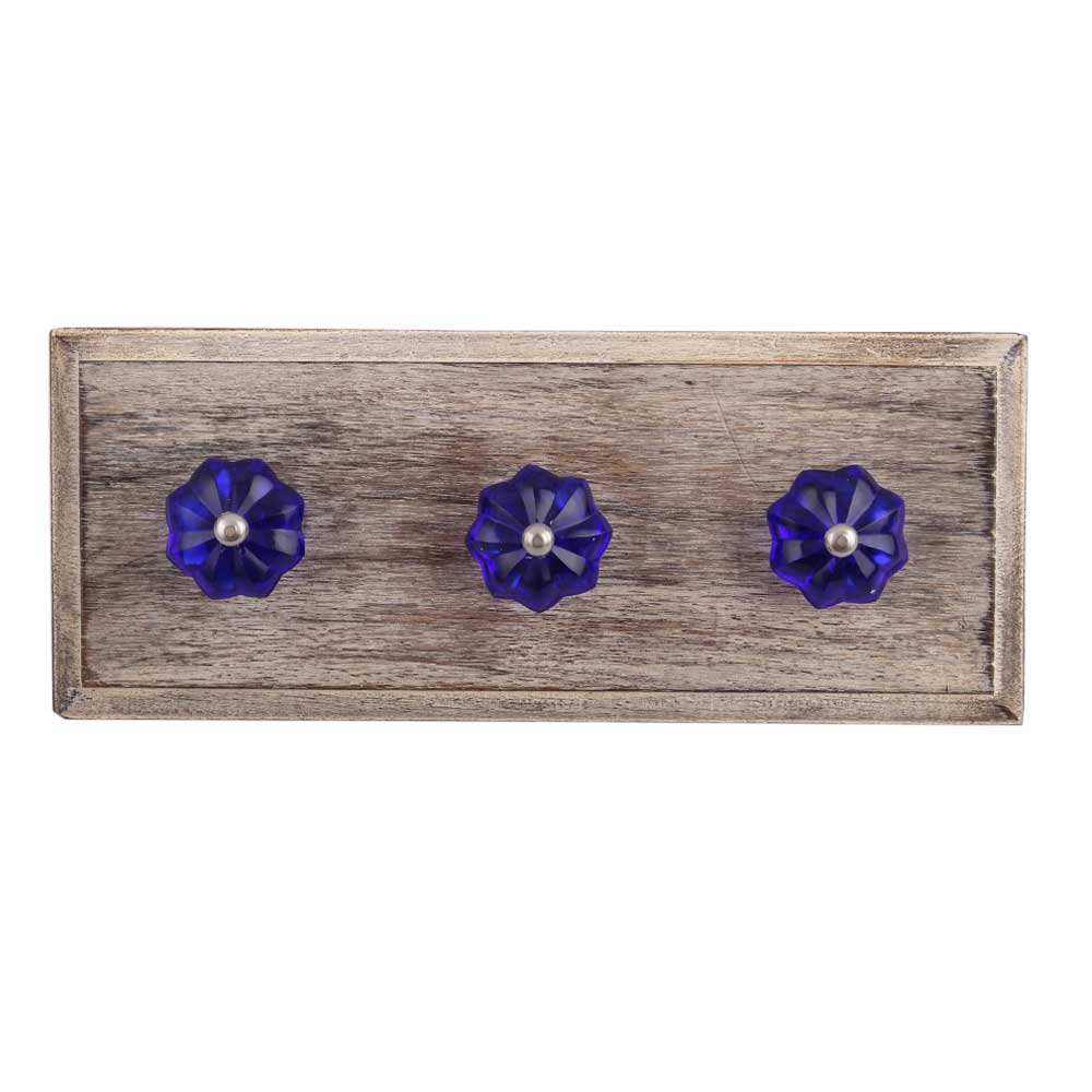 Navy Blue Small Melon Glass Wooden Hook. A Perfect Complement to the Soft Tone of the Wood are these White Traditional Hat & Coat Hook Made of Genuine Porcelain and Brass. It can be use to Hang Jewellery, Leashes, Towels, Scarves, Light Weight Sweaters, Caps Etc.