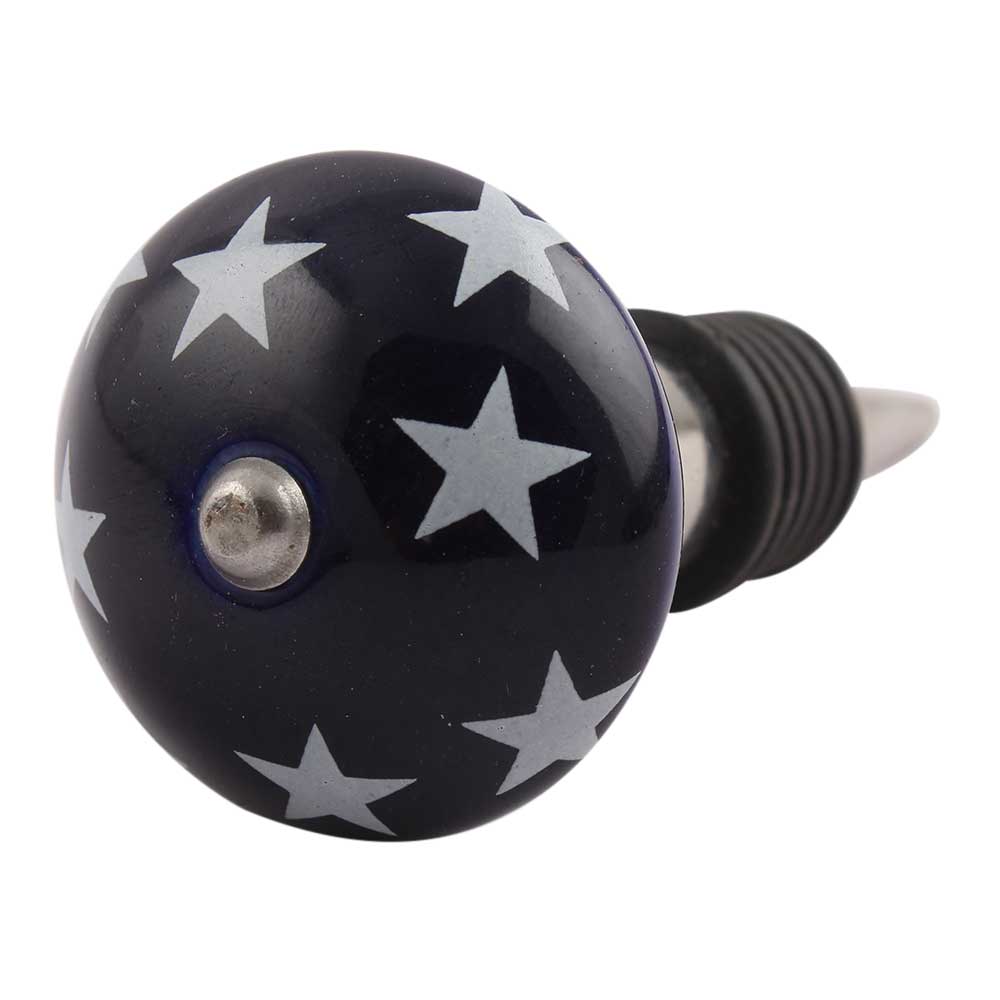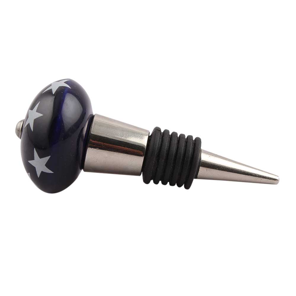 Navy Blue Star Ceramic Wine Stopper.zinc alloy wine bottle stopper with attractive Jute Bag Packaging.
