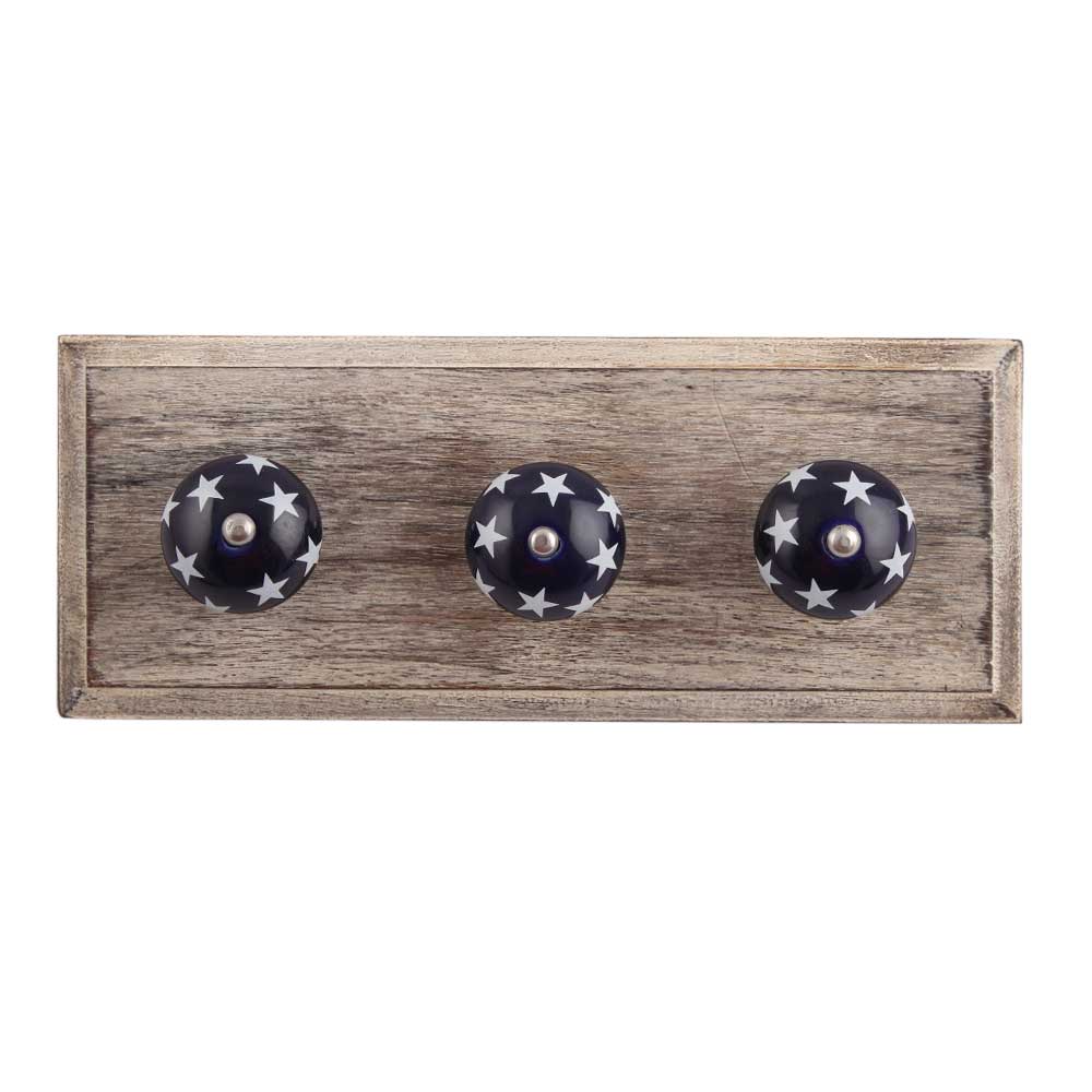 Navy Blue Star Ceramic Wooden Hook. A Perfect Complement to the Soft Tone of the Wood are these White Traditional Hat &Amp; Coat Hook Made of Genuine Porcelain and Brass. It can be use to Hang Jewellery, Leashes, Towels, Scarves, Light Weight Sweaters, Caps Etc.