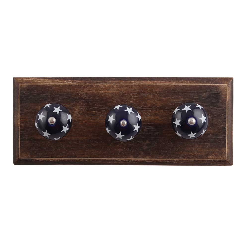 Navy Blue Star Ceramic Wooden Hook. A Perfect Complement to the Soft Tone of the Wood are these White Traditional Hat &Amp; Coat Hook Made of Genuine Porcelain and Brass. It can be use to Hang Jewellery, Leashes, Towels, Scarves, Light Weight Sweaters, Caps Etc.