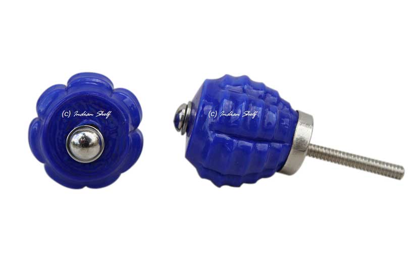 Navy Blue Step Glass Knobs. Ideal for Drawer, Dresser, Cabinet, Wardrobe, Cupboard and Almirah.