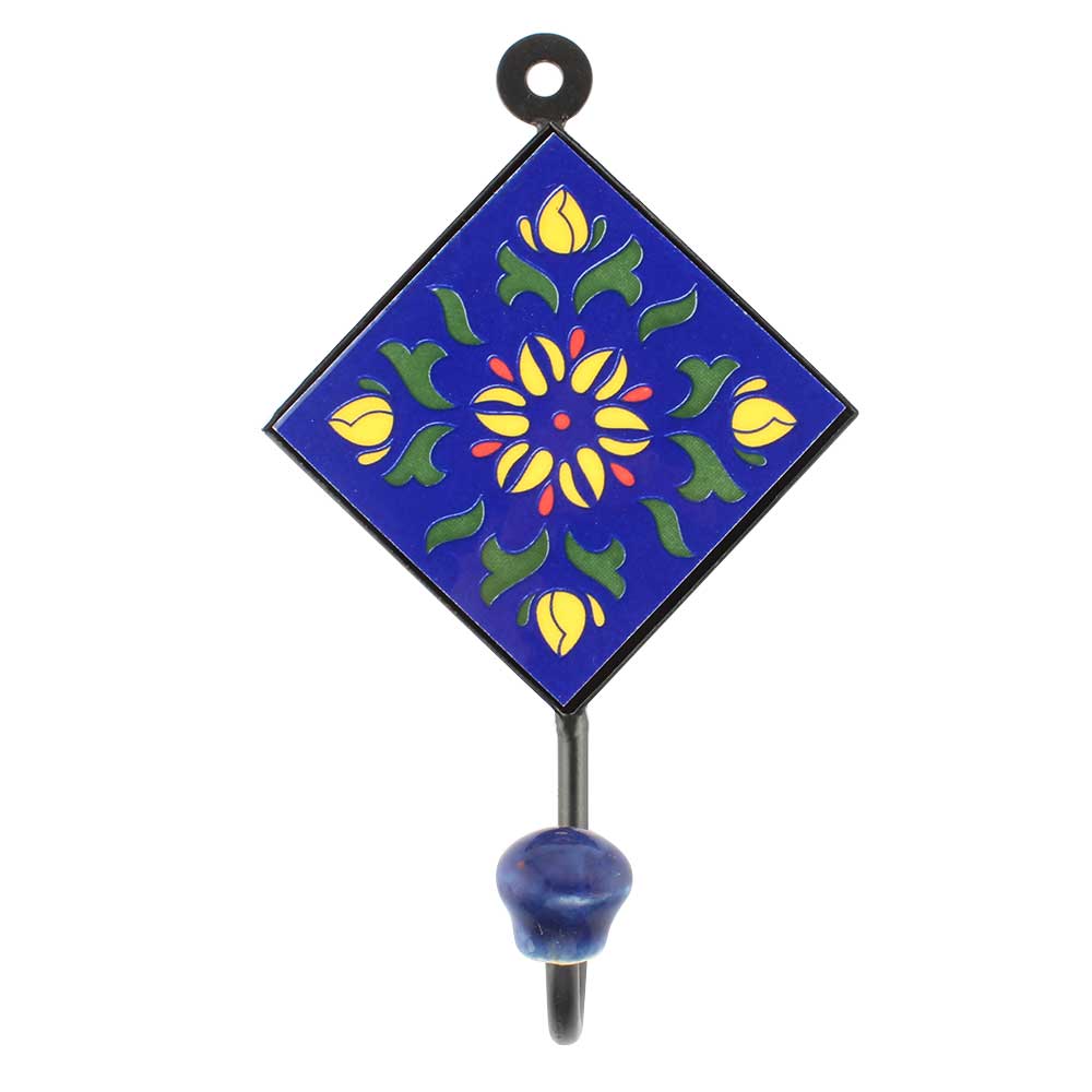 Navy Blue Sunflower Ceramic Tiles Hooks Online. When Put on Wall or Cabinet It is An Art in Itself. The Metal Part of this Hook is Black Powder Coated.