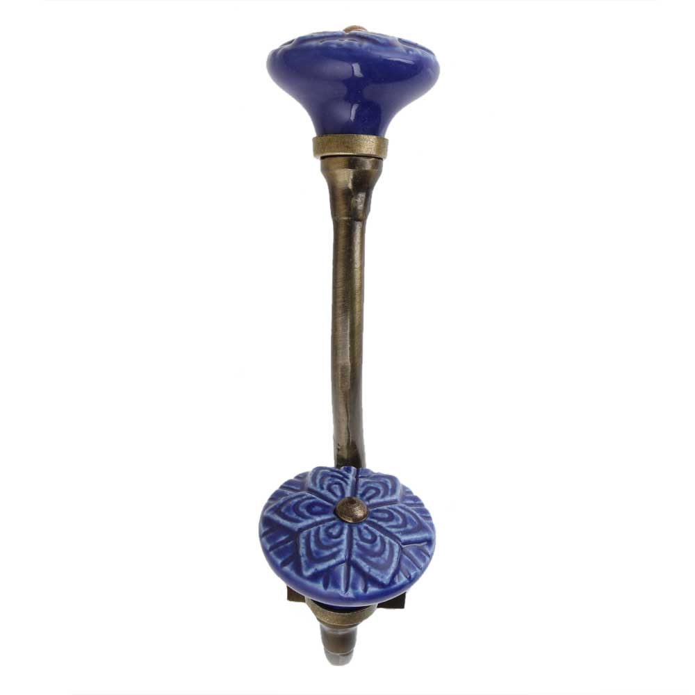 Navy Blue Wheel Flower Ceramic Antique Iron Hook. When Put on Wall or Cabinet It is An Art in Itself. This Hook is Strong Enough to Hold Your Cloths, Keys, Tea Cups, Coffee Mugs, Hand Towels Etc.