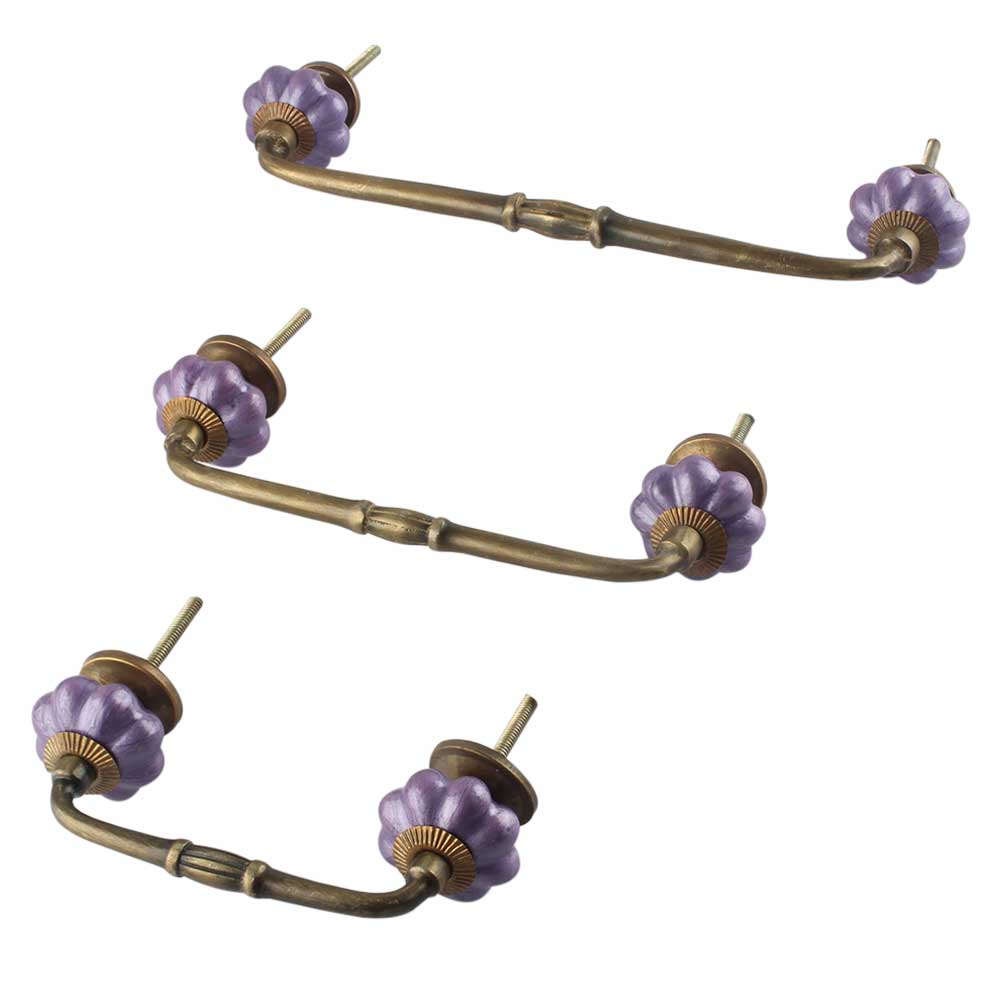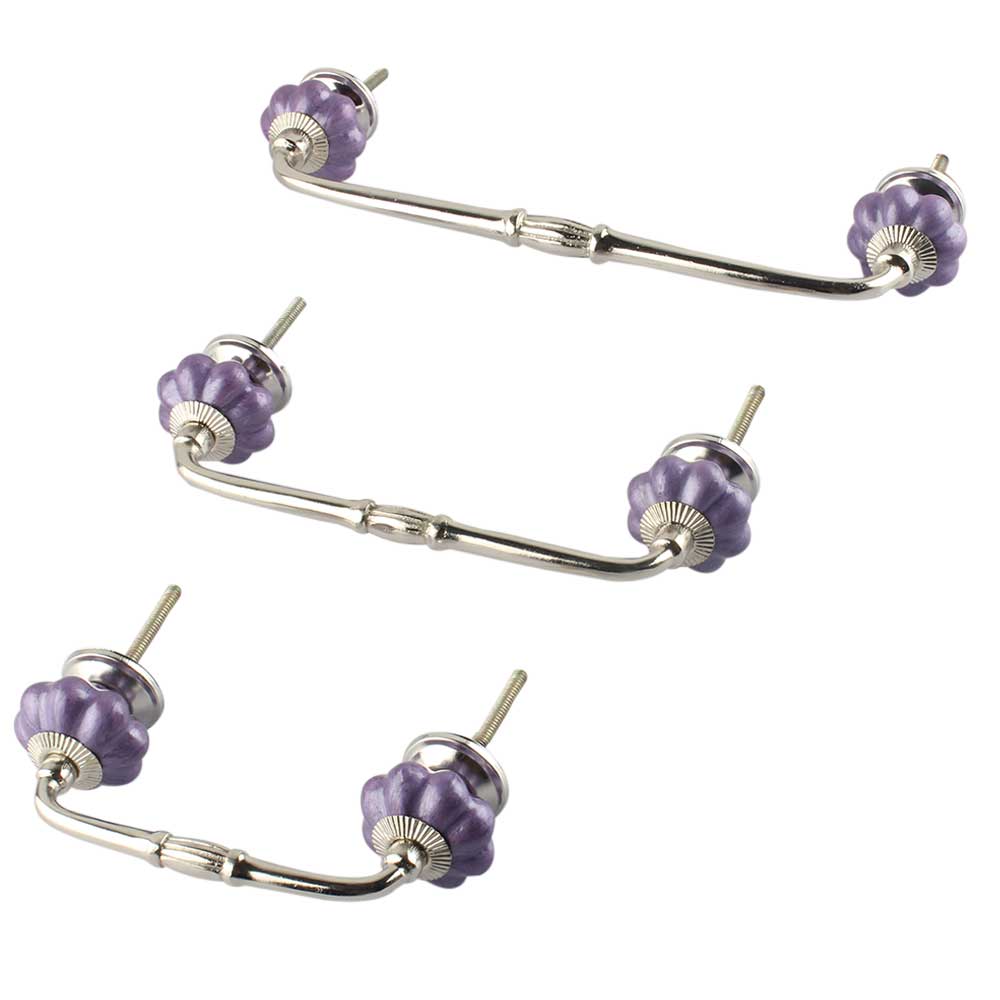 Neon Purple Ceramic Melon Bridge Handle Online. Ideal for Drawer, Dresser, Cabinet, Wardrobe, Cupboard and Almirah etc.