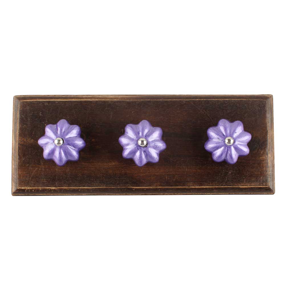 Neon Purple Ceramic Melon Wooden Hook. A Perfect Complement to the Soft Tone of the Wood are these White Traditional Hat and Coat Hook Made of Genuine Porcelain and Brass. It can be used to Hang Jewelry, Leashes, Towels, Scarves, Light Weight Sweaters, Caps etc.