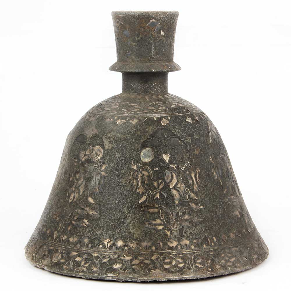 Of Typical Form, with Pronounced Ring Below the Flaring Mouth, Two Bands of Carved Scrolling Floral Decoration and Two Further Bands with Elegant Floral Spray.