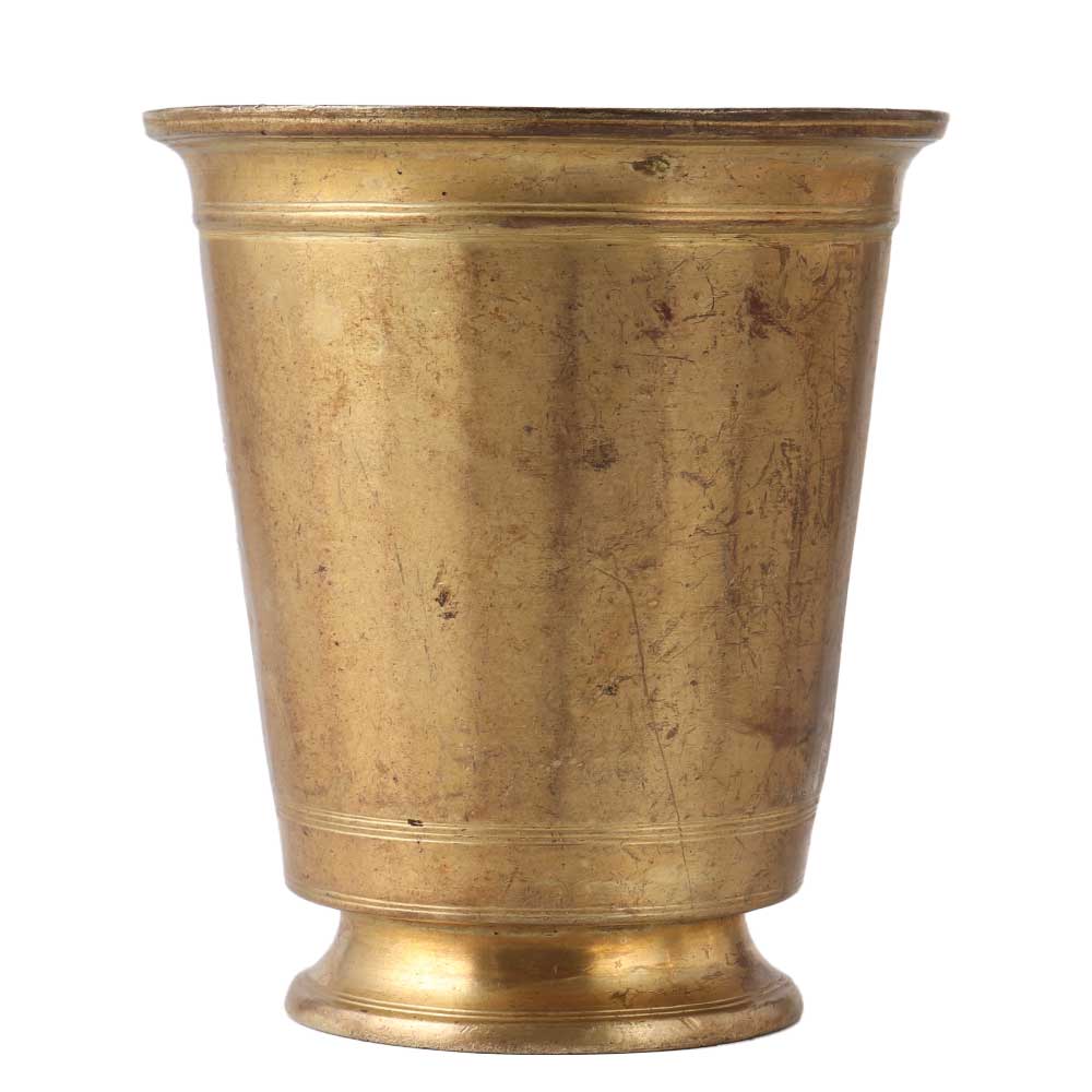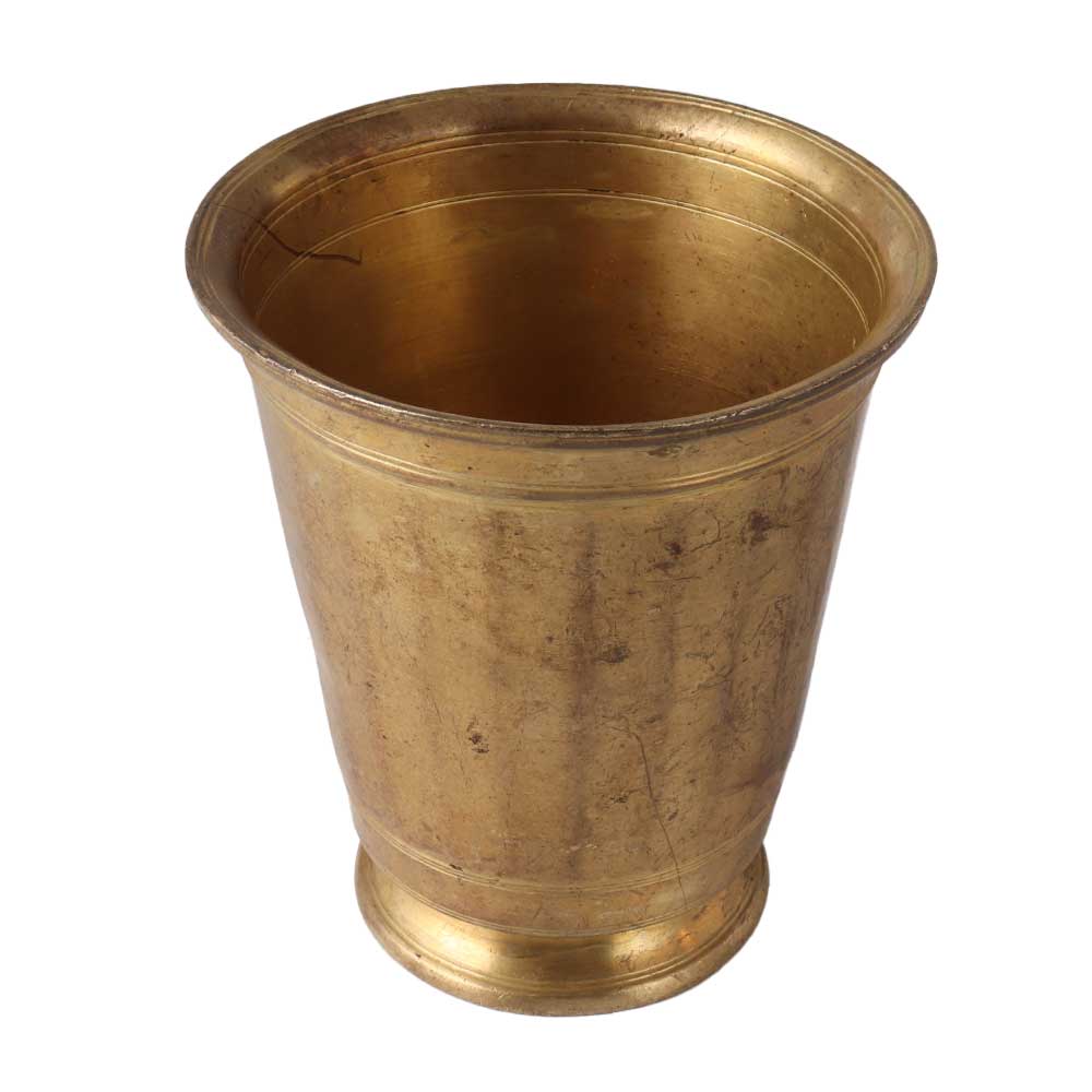 This charming old-fashioned brass glass has a shiny surface. It is the excellent showcase for your cosmopolitan retro design and may be placed on your dining table, displayed on a shelf, or mantle.