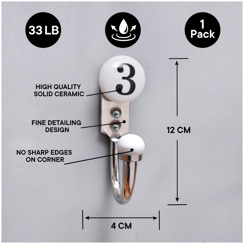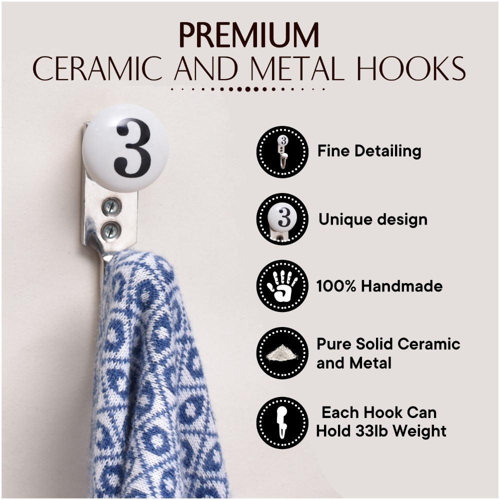 3 Flat Ceramic Hook. When Put on Wall or Cabinet It is An Art in Itself. This Hook is Strong Enough to Hold Your Keys, Tea Cups, Hand Towels, Cloths Etc.