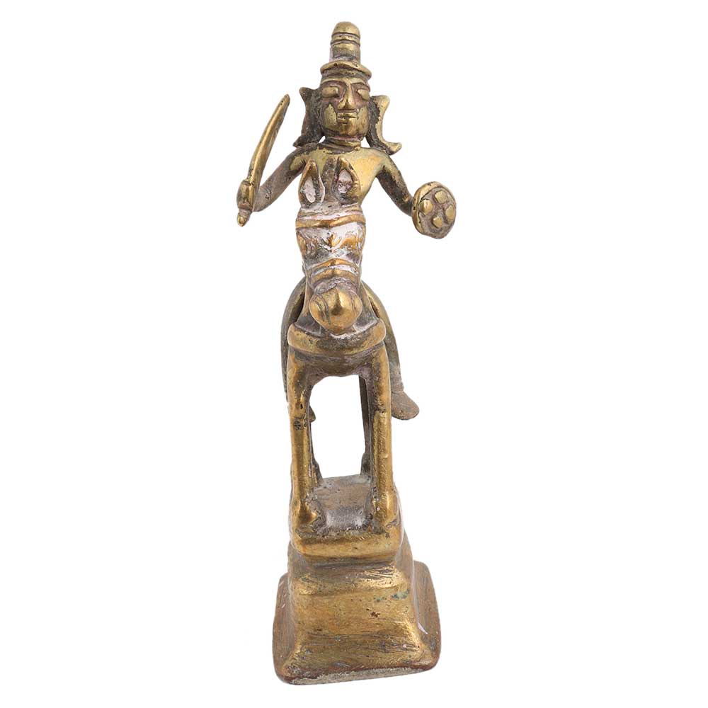 Old used brass statue of Indian god riding a horse with sword in his hand made by the tribal community using old lost wax method. Paper weight, Diwali gift, wedding gift, new year gift, luck charm, graduation gift, souvenir and the ideal gift for your near and dear ones.