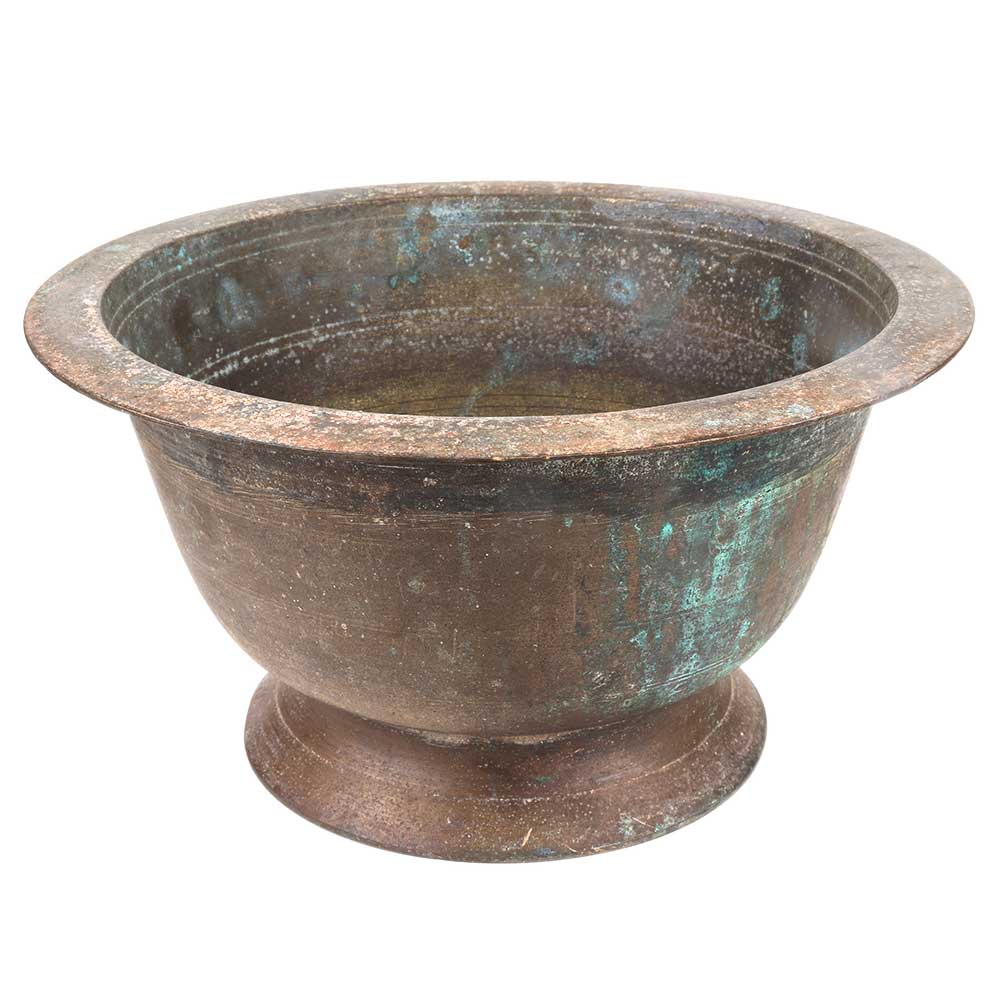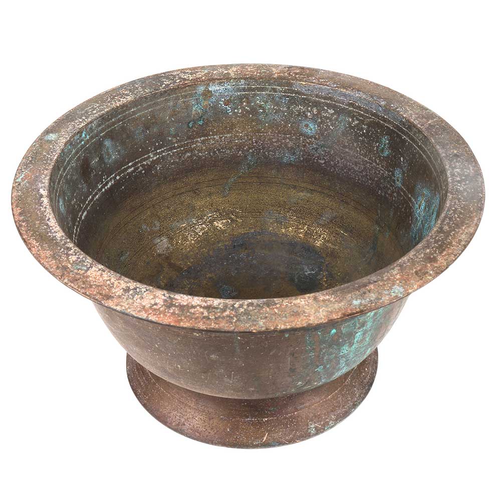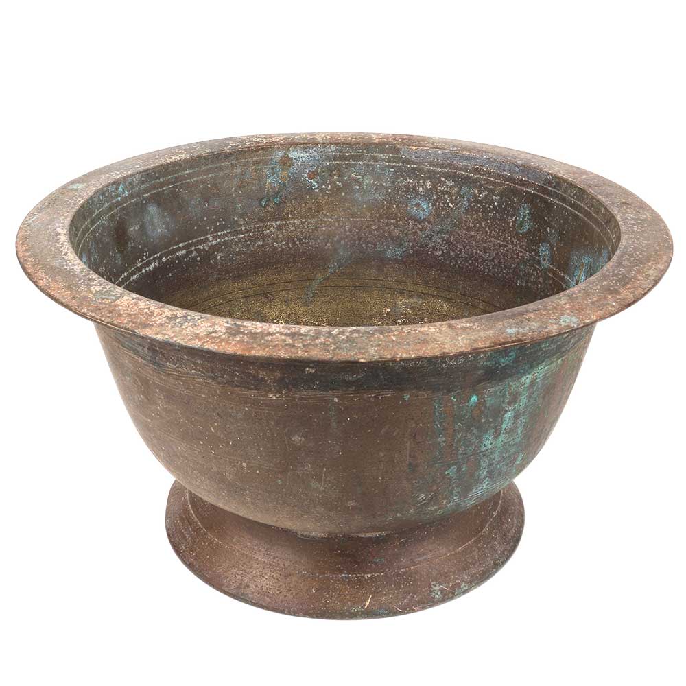Old brass flower pot with an open mouth and a flat rim used as a planter or flower pot, as a table decoration, Incense burner, window display, hang them to your patio, porch or balcony . Gift it to your near and dear ones.