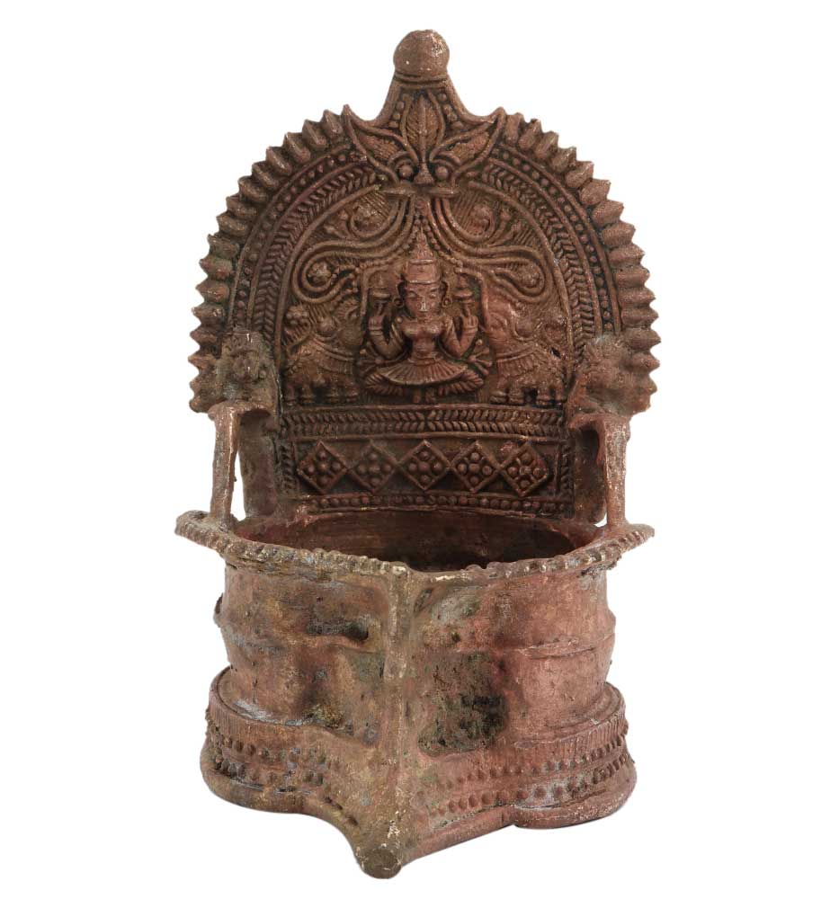 Hand crafted goddess Laxmi engraved with small oil container enough to hold oil and ghee for a single wick. Wedding decoration, anniversary gift, festival and other religious occasions.