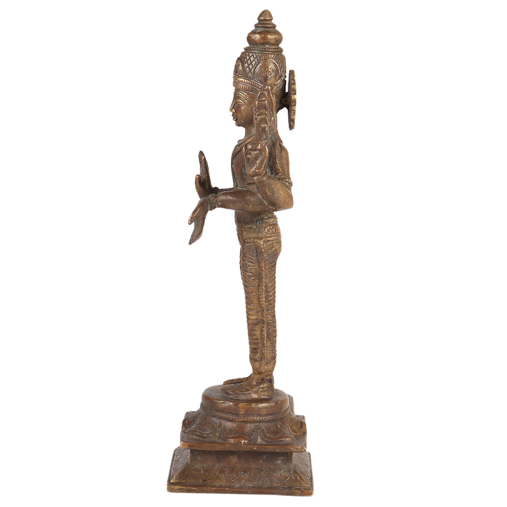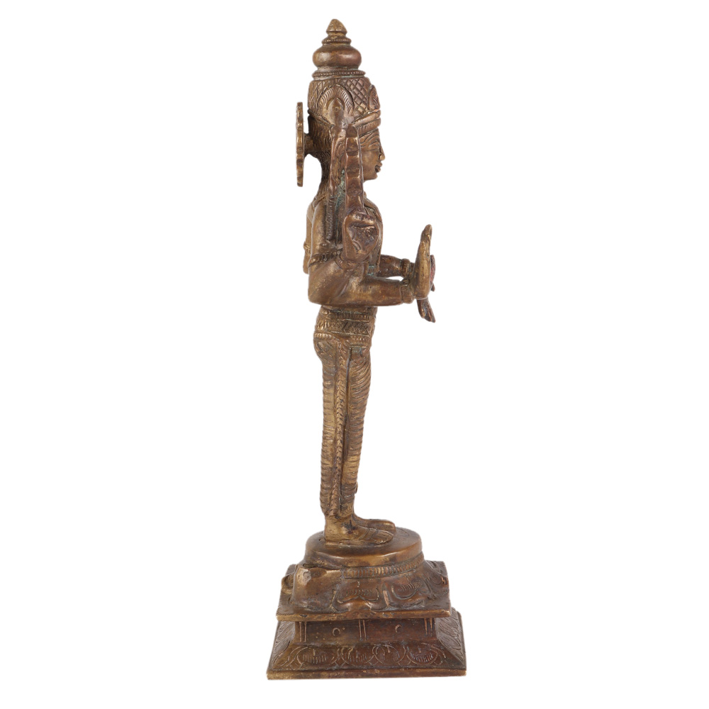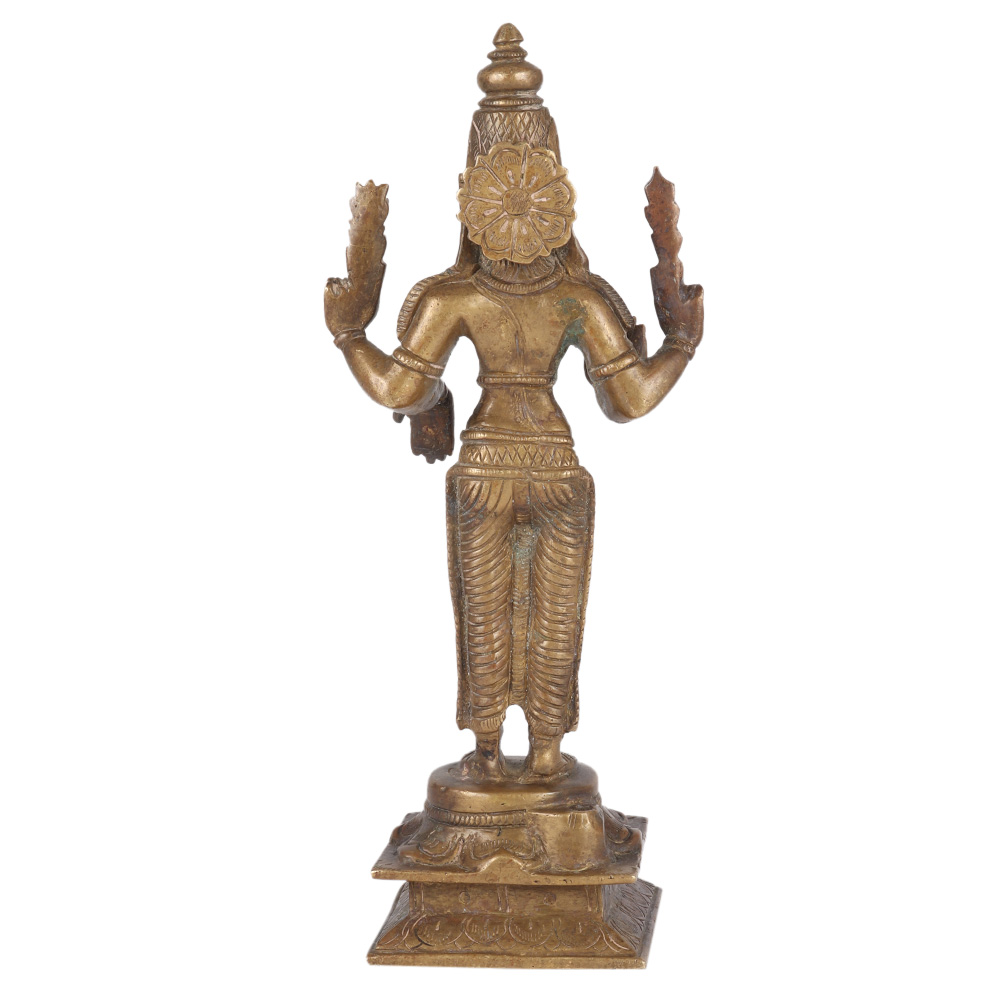 Lord Narayan (Vishnu) is the universe's sustainer and his consort Goddess Lakshmi is the Goddess of wealth. Install this brass statue in your puja altar, prayer room, business cabin, or living area to invoke the blessings of Vishnu Laxmi. The worshipper of Vishnu Lakshmi receives Lord Vishnu's blessings, which provide him peace, prosperity, happiness, and protection against all kinds of negative energies, evil forces, foes, and negativity.