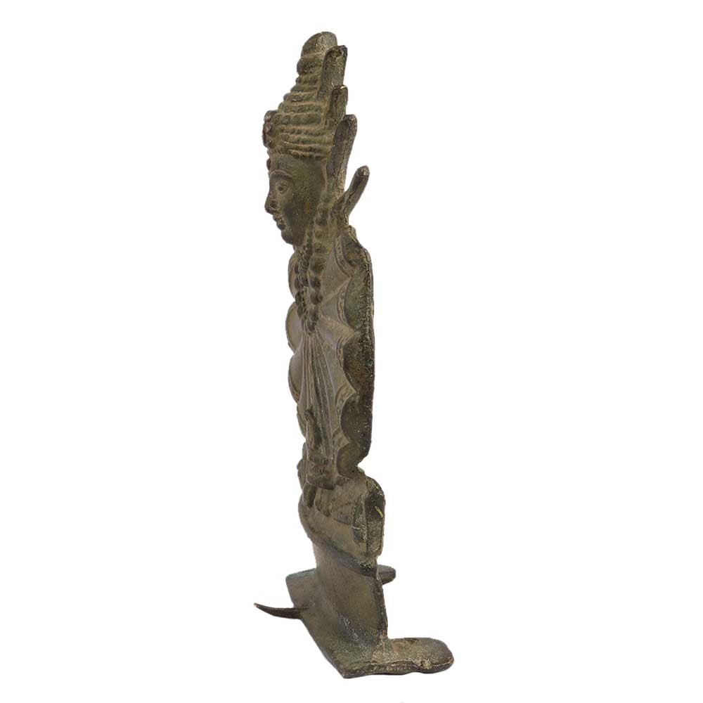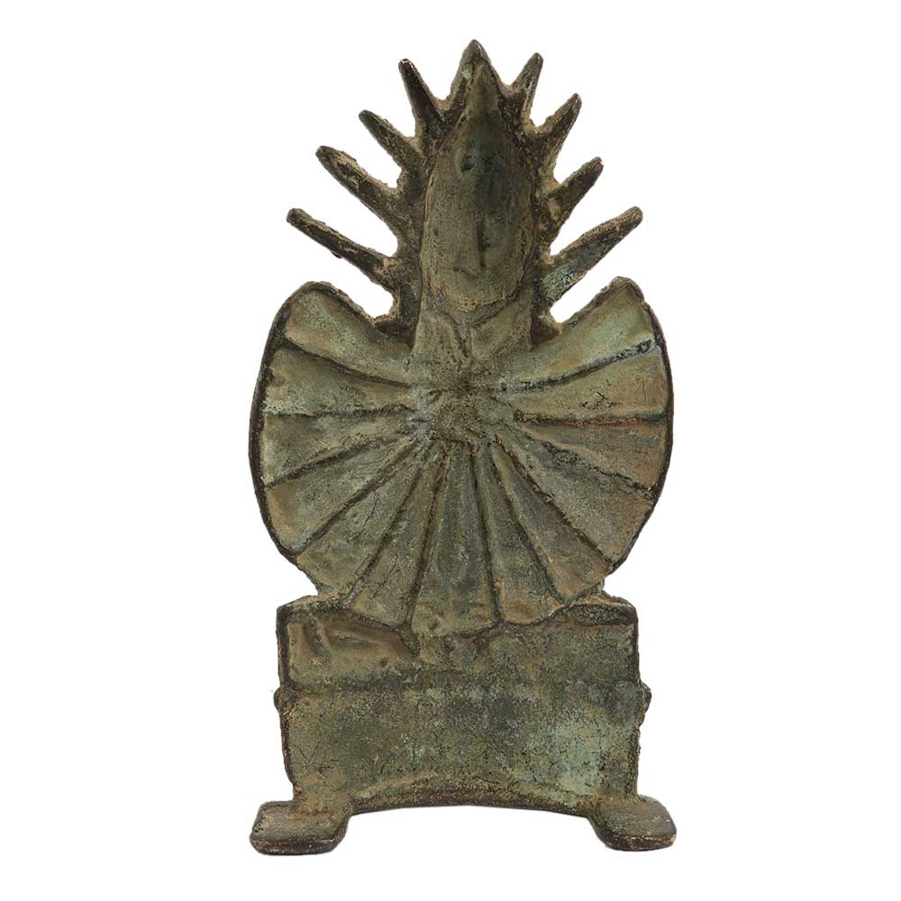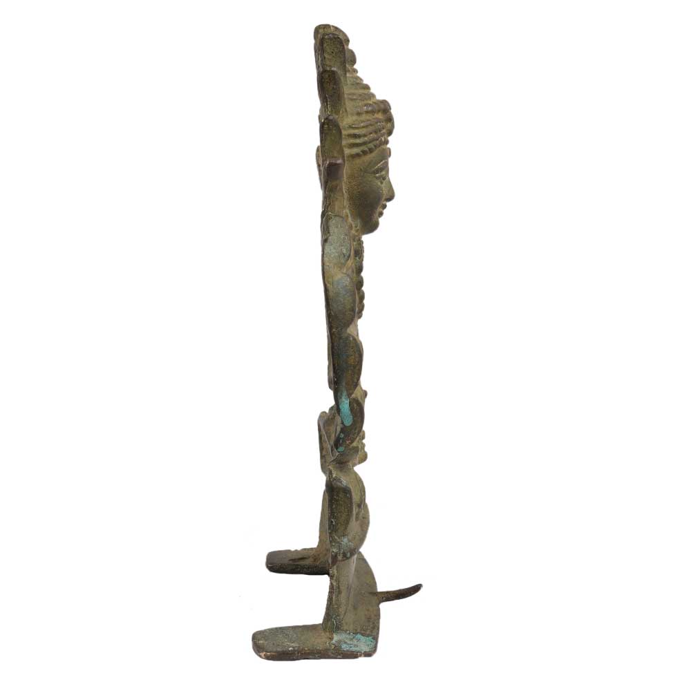 Old Brass Tribal Goddess Mata Statue With Unusual Outfit Made By The Artisans Of The Local Tribe Of India It Has Nice Decorated Work Done On it. This Amazing Showpiece Can Be Placed in Your Living Room or in Your Office as wall hanging and decoration for your interiors.