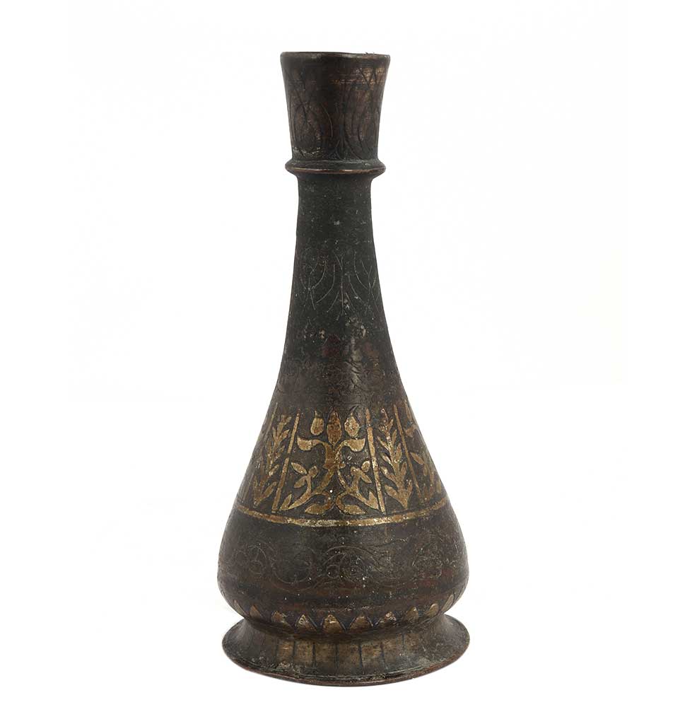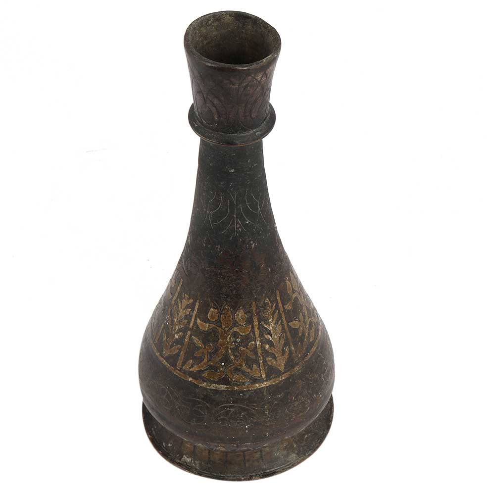 Old Brass Vase With Golden Floral Design At The Base has a lovely shape and a small mouth . Use it as a flower vase, table decoration, Diwali gift, wedding gift, . Gift it to your friends and relatives during special and important functions and occasions. It has a lovely shape and a small mouth . Use it as a flower vase, table decoration, Diwali gift, wedding gift, . Gift it to your friends and relatives during special and important functions and occasions.