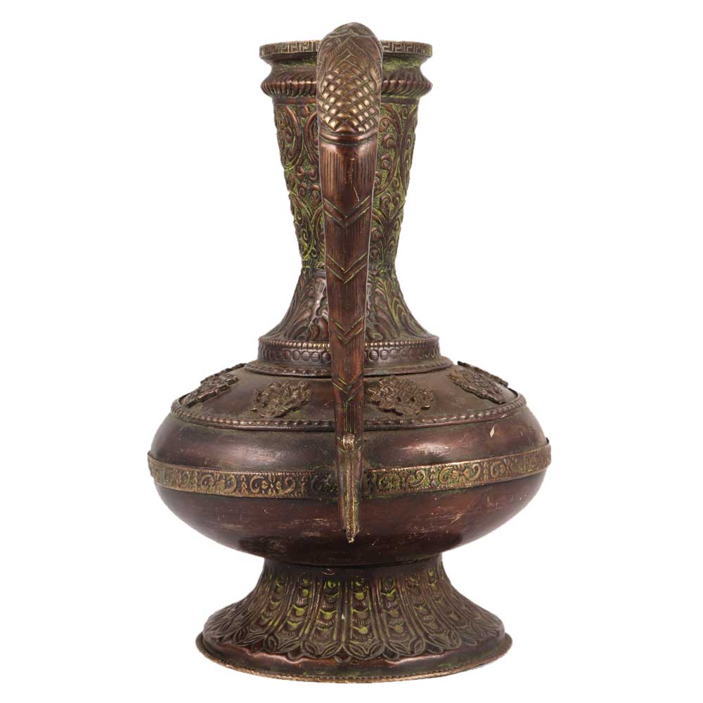 This elegant copper wine surahi with foliage sequence and Islamic design engraved style would make an ideal treat for any wine enthusiast. It would look great in a wine cellar, Butler's Kitchen, console table, or local pub. The surahi would make a wonderful Christmas present for friends and relatives.