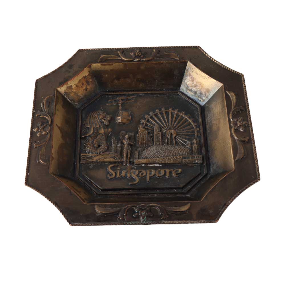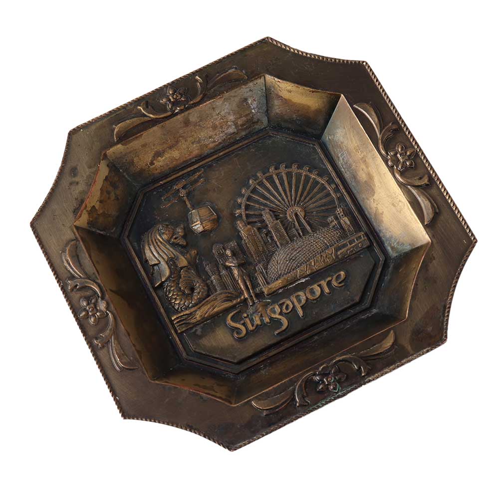 An old metal ashtray is a small receptacle, typically made of metal, used for holding cigarette or cigar ashes. They were commonly found in homes, offices, and public spaces during the 20th century, but have since fallen out of use as smoking has become less popular. Many old metal ashtrays were made of materials such as brass, aluminium, or steel and were often decorated with intricate designs or etched with logos or advertisements. Some ashtrays were also made to be portable, with a lid or carrying handle, making them easy to take on the go. However, due to the health hazards associated with smoking, the use of ashtrays has declined, and they have become more of a collectible item than a functional one.