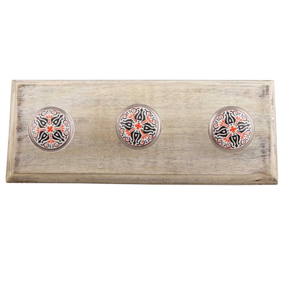 Orange And Black Ceramic Wooden Hook. A Perfect Complement to the Soft Tone of the Wood are these White Traditional Hat and Coat Hook Made of Genuine Porcelain and Brass. It can be used to Hang Jewelry, Leashes, Towels, Scarves, Light Weight Sweaters, Caps etc.