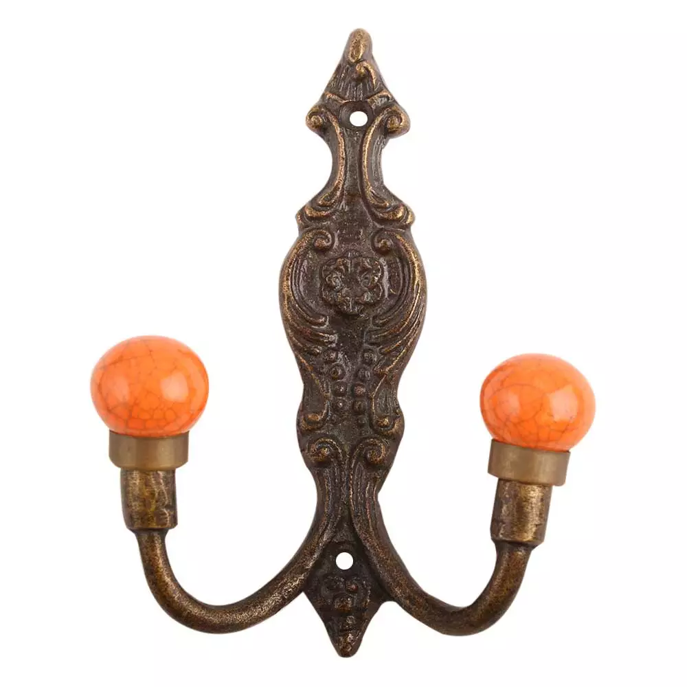 Orange Crackle Ceramic Iron Hook. When Put on Wall or Cabinet It Gives A Sturdy Look. This Hook is Strong Enough to Hold Your Cloths, Keys, Tea Cups, Coffee Mugs, Hand Towels Etc