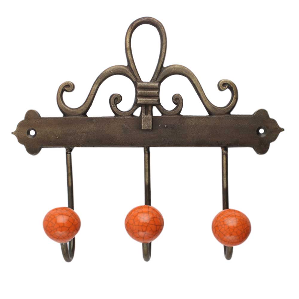 Orange Crackle Ceramic Iron Hook. A Perfect Complement to the Soft Tone of the Wood are these White Traditional Hat & Coat Hook Made of Genuine Porcelain and Brass. It can be use to Hang Jewellery, Leashes, Towels, Scarves, Light Weight Sweaters, Caps Etc.