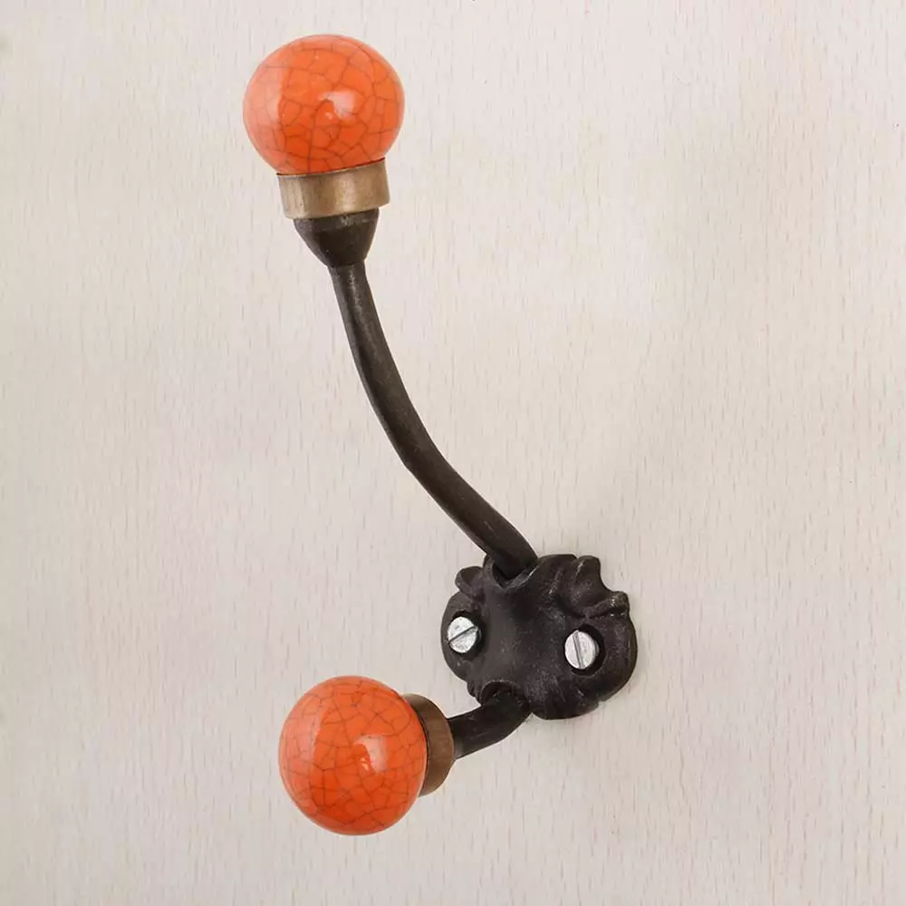 Orange Crackle Iron Hook-Ehg-84. When Put on Wall or Cabinet It Gives A Sturdy Look. This Hook is Strong Enough to Hold Your Cloths, Keys, Tea Cups, Coffee Mugs, Hand Towels Etc.