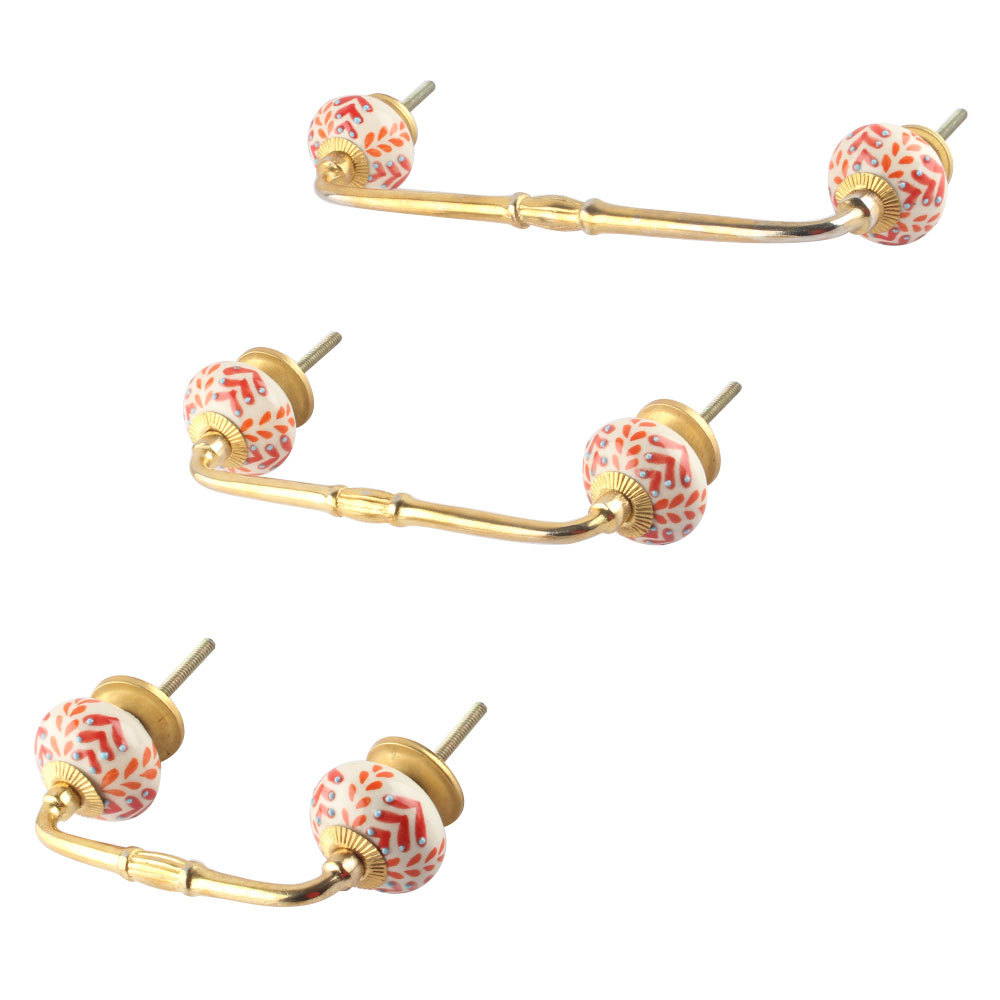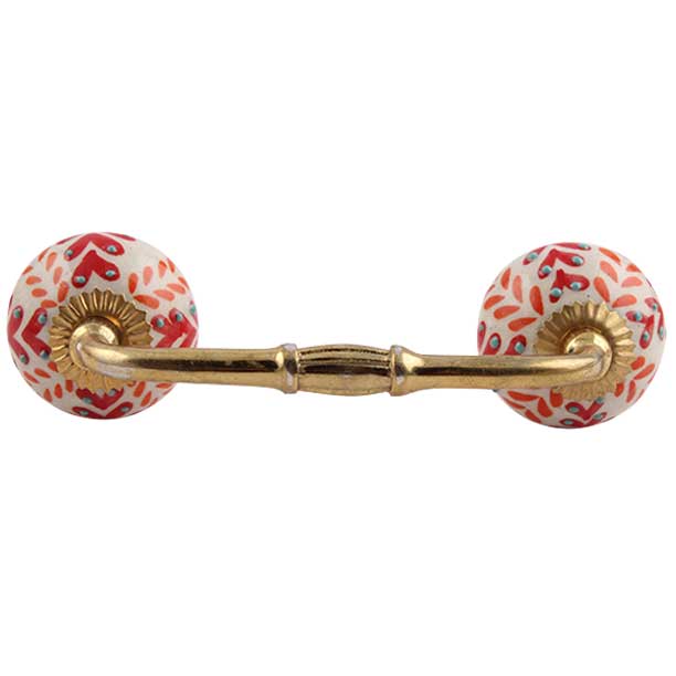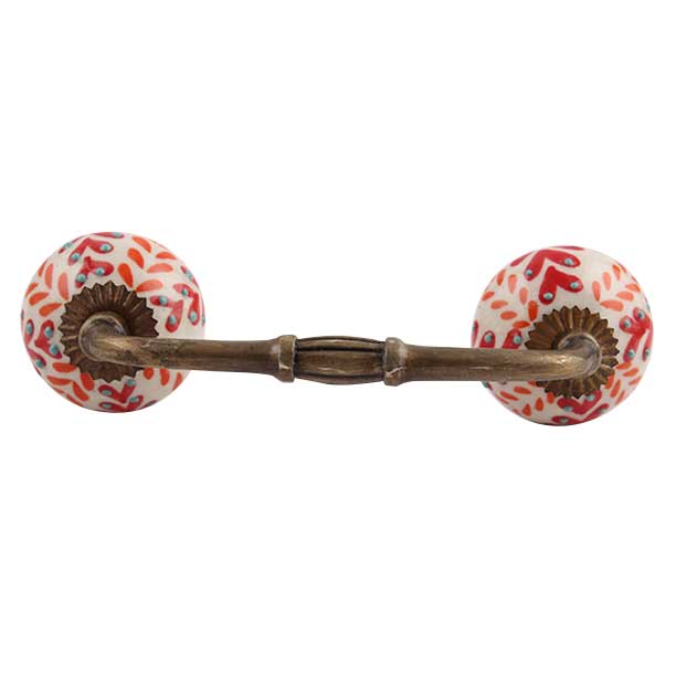 Orange Leaf Ceramic Floral Bridge Handle. Ideal for Drawer, Dresser, Cabinet, Wardrobe, Cupboard and Almirah.