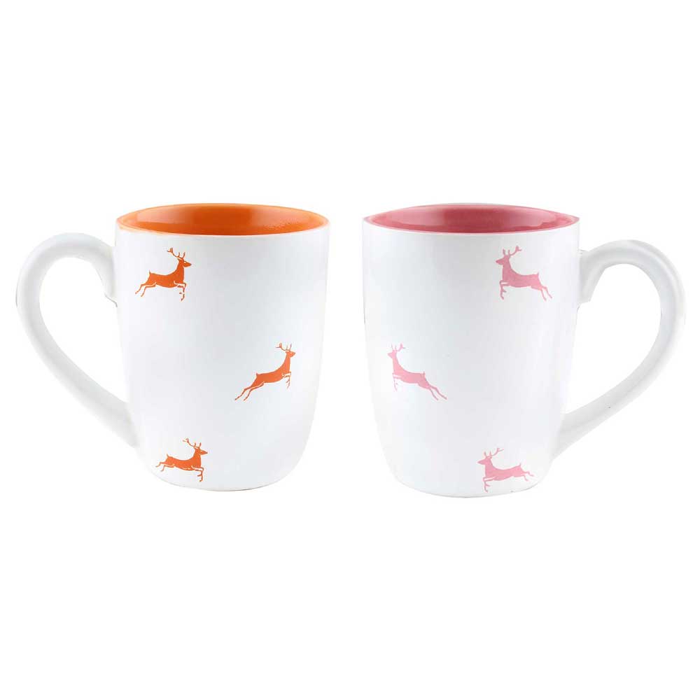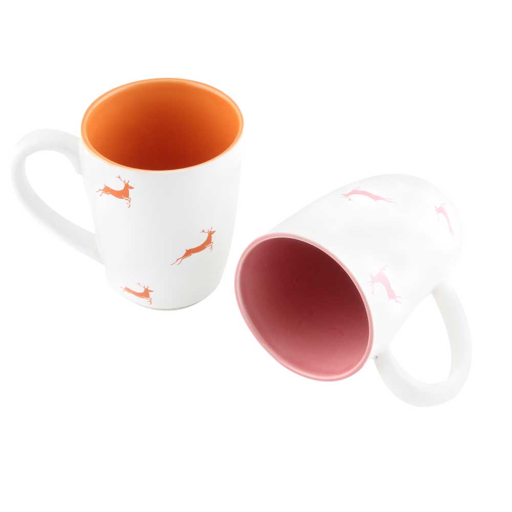 Orange & Pink Running Deer Decorative Handcraft Ceramic Coffee Mug