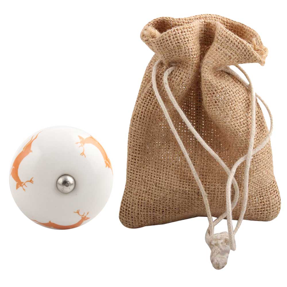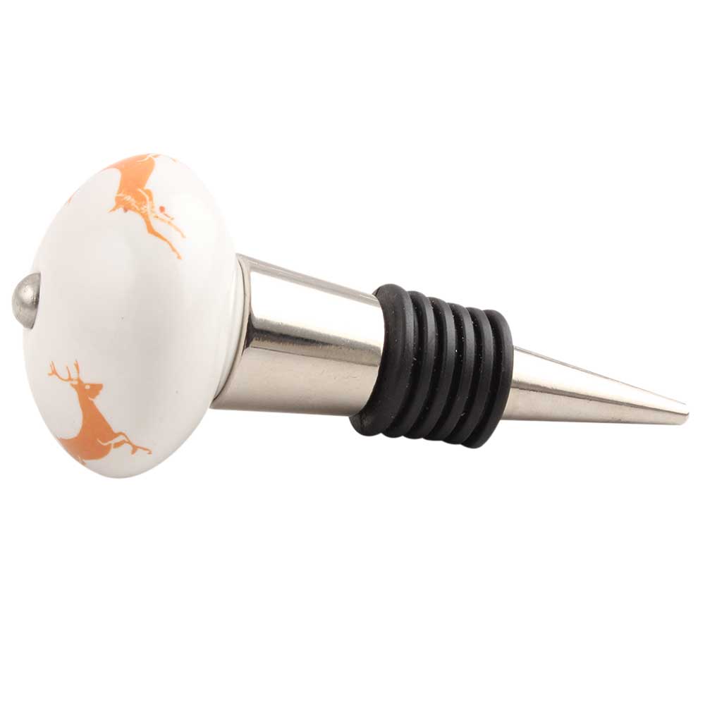 Orange Runing Rein Deer Pattern Ceramic Wine Stopper.zinc alloy wine bottle stopper with attractive Jute Bag Packaging.