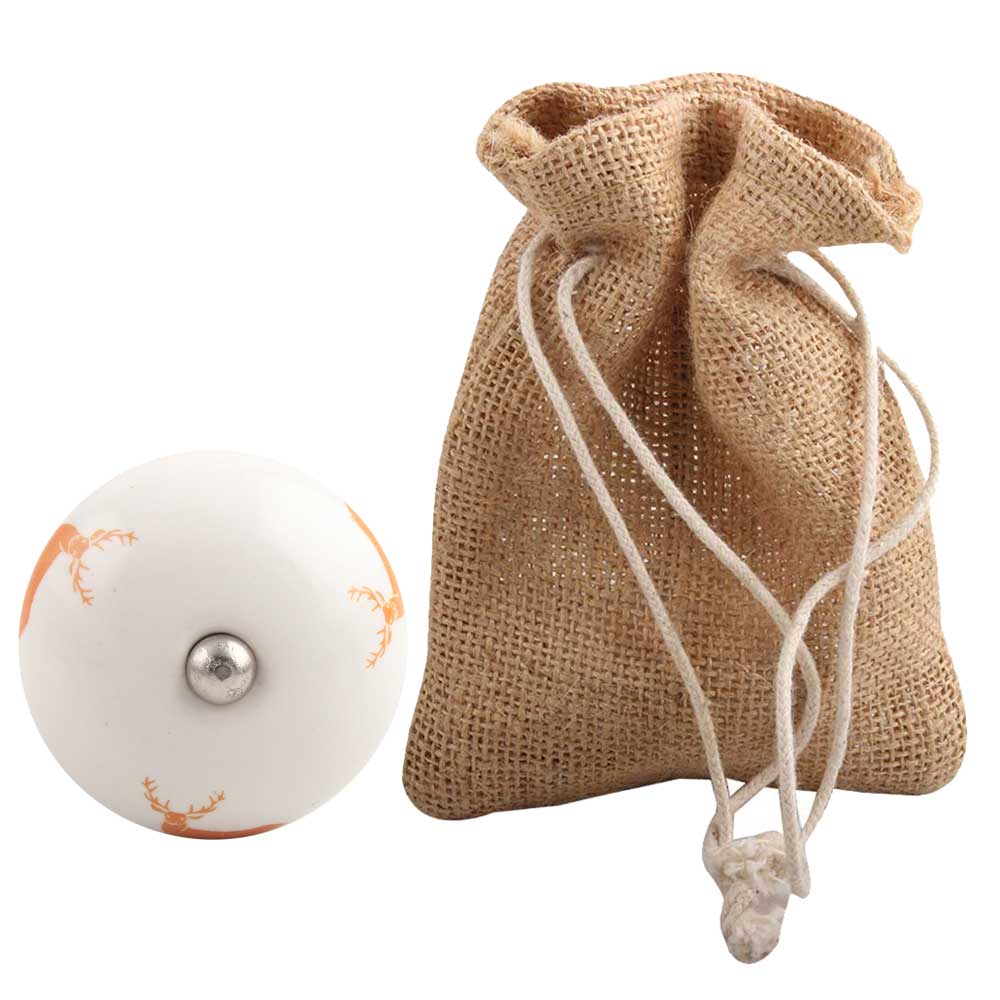 Orange Standing Rein Deer Pattern Ceramic Wine Stopper.zinc alloy wine bottle stopper with attractive Jute Bag Packaging.