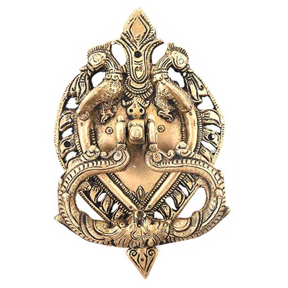 The carved knocker with its twisted peacock motif is inspired by the the emblems of Royal Kingdoms in ancient India. Peacock has been seen as a symbol of wealth, beauty and rebirth since ancient times.