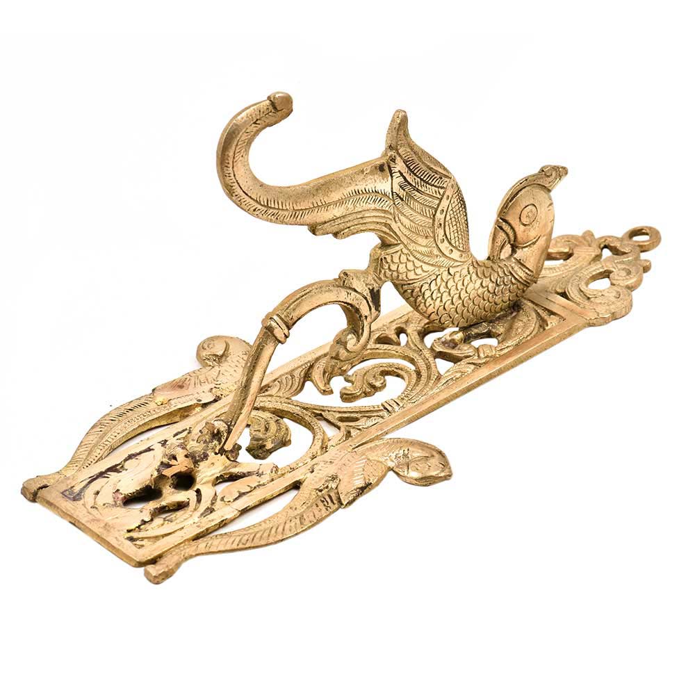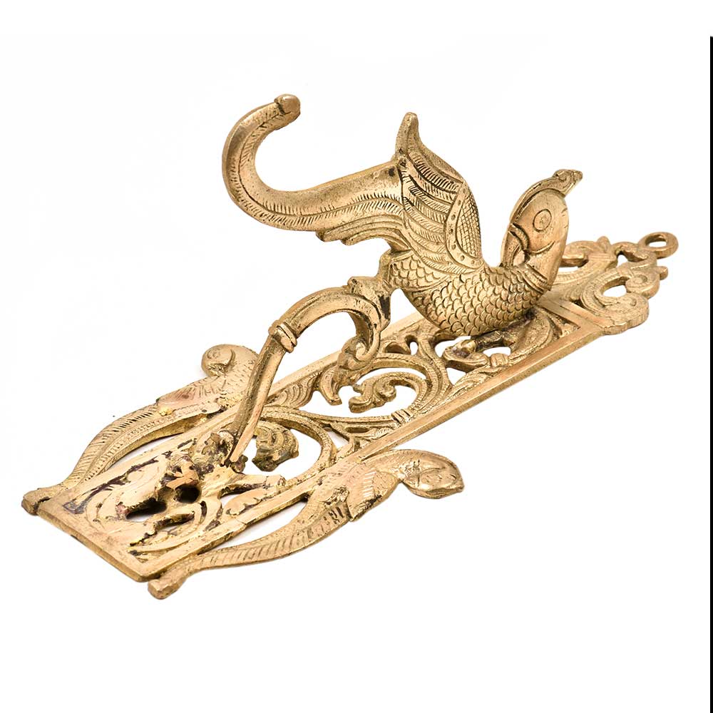 Enhance the decor value of the temple, house, office, hotel, is handmade solid brass Peacock coat hook hanger finely engraved by the craftsmen. It comes with a Peacock bracket for hanging bells or diyas.