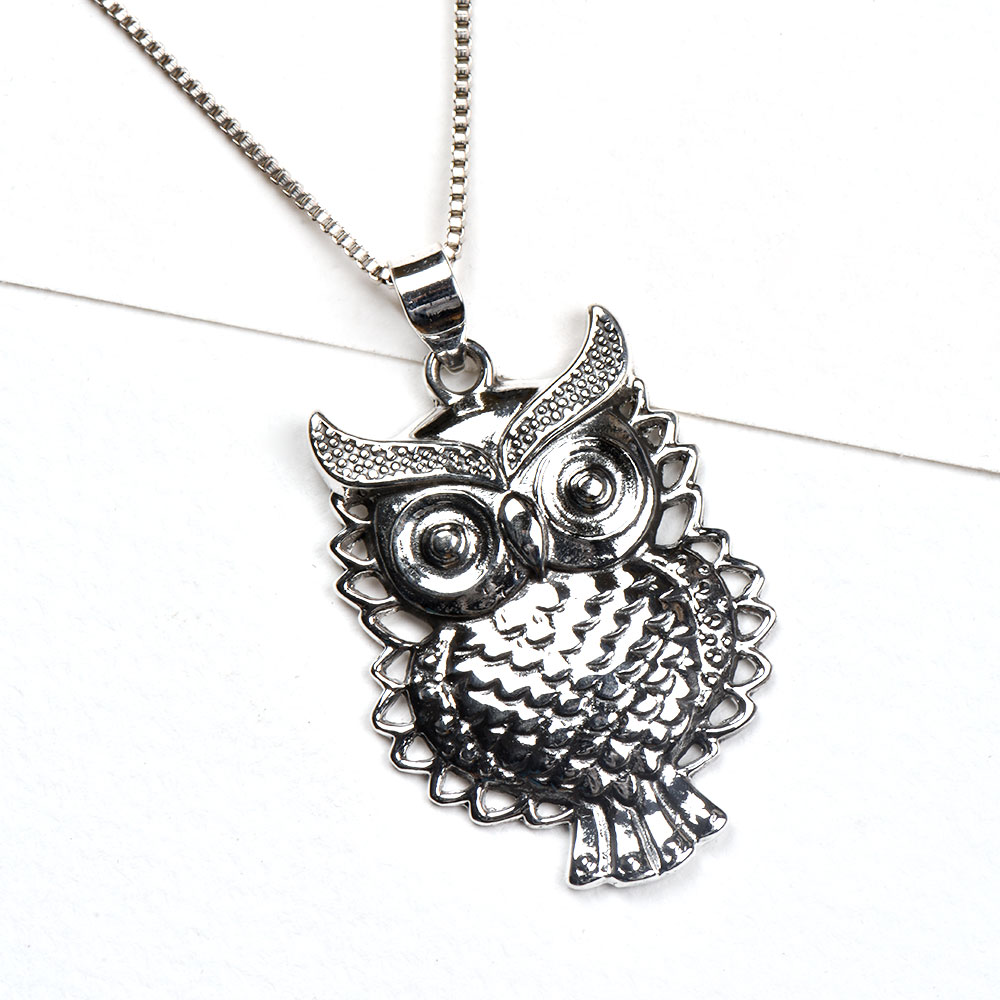 A very detailed 92.5 sterling silver pendant in the form of owl where the eyes beak and the feathers are clearly visible. This pendant is handmade by the expert artisans of India. A very subtle accessory for a wedding , anniversary birthday party etc. It is also the perfect gift for your family and friends on the occasion Diwali, Christmas or new year party. It can also be worn to a small family gathering.