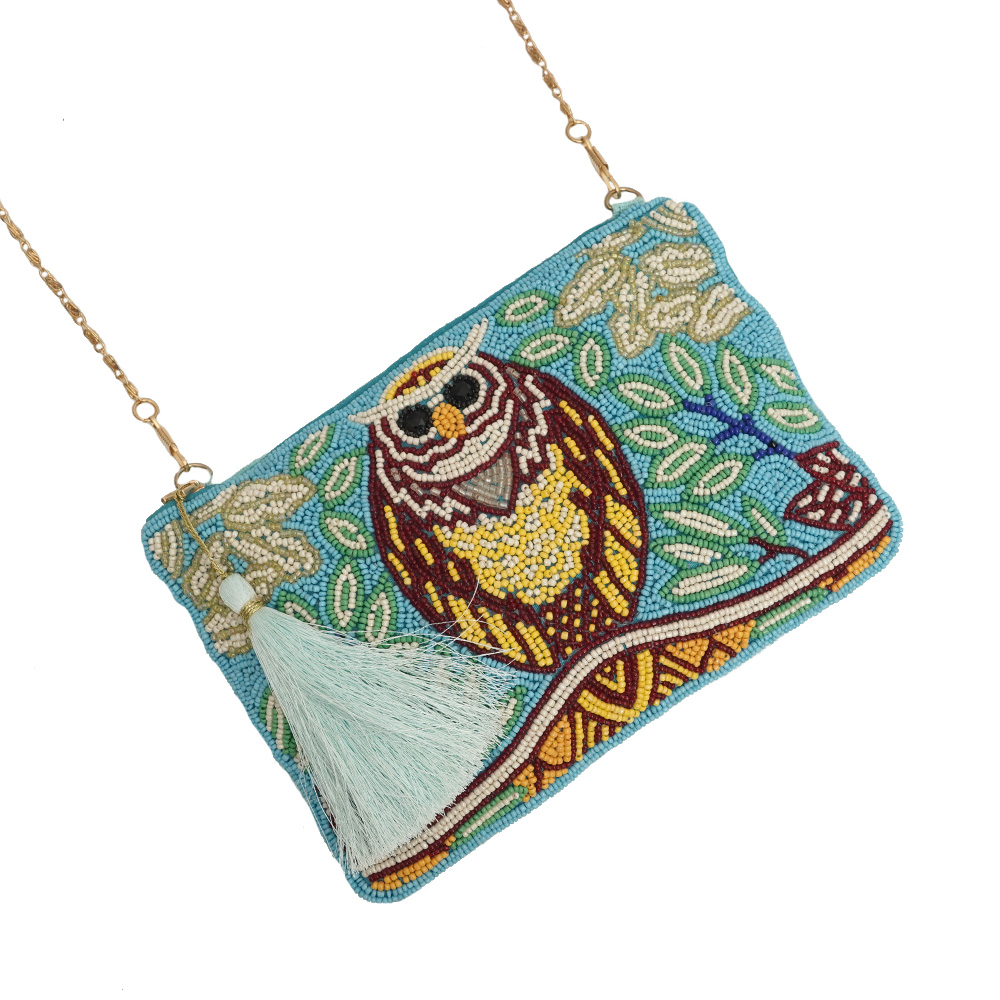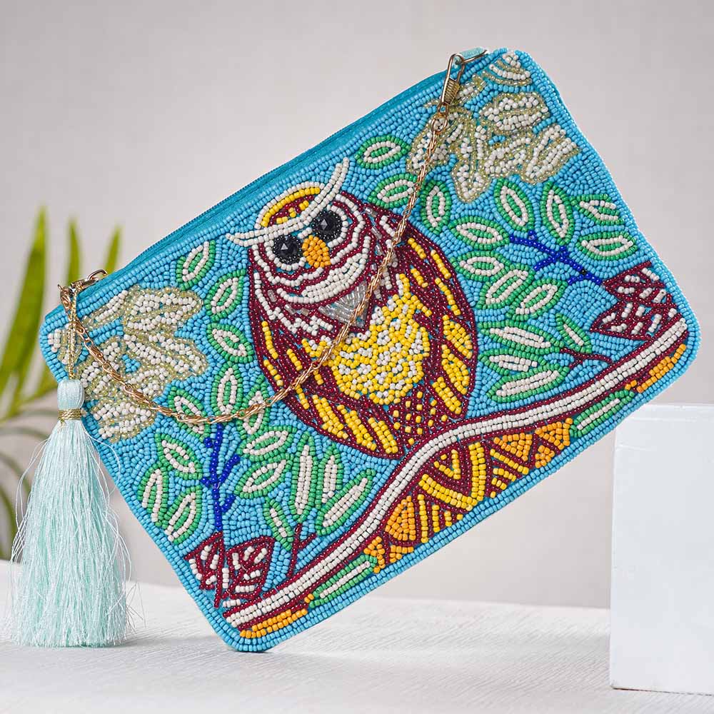 Buy a beautiful sling handbag online that is the perfect addition to any woman's wardrobe. It is made of high-quality cotton, adorned with intricate and beautiful beads, and comes in a lovely light blue colour. The bag features a stunning owl and tree engraving, which adds a touch of whimsy to its elegant design. This handbag is handcrafted by professional craftsmen, ensuring that each piece is unique and of the highest quality. It is a versatile accessory that can be used as an office bag or a bag for going out and traveling. This bag falls into the category of small luxury bags for women, making it an ideal choice for those who appreciate fine craftsmanship and unique design. It is also an excellent gift option for family, friends, or relatives who enjoy using sling bags for women. Overall, this sling handbag is an excellent choice for women who want to add a touch of elegance and style to their wardrobe.